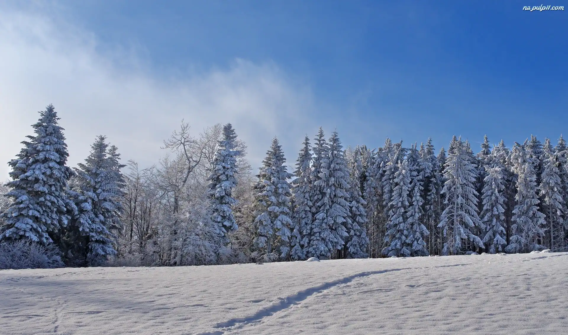 Pole, Zima, Las, Åšnieg, Drzewa Na Pulpit