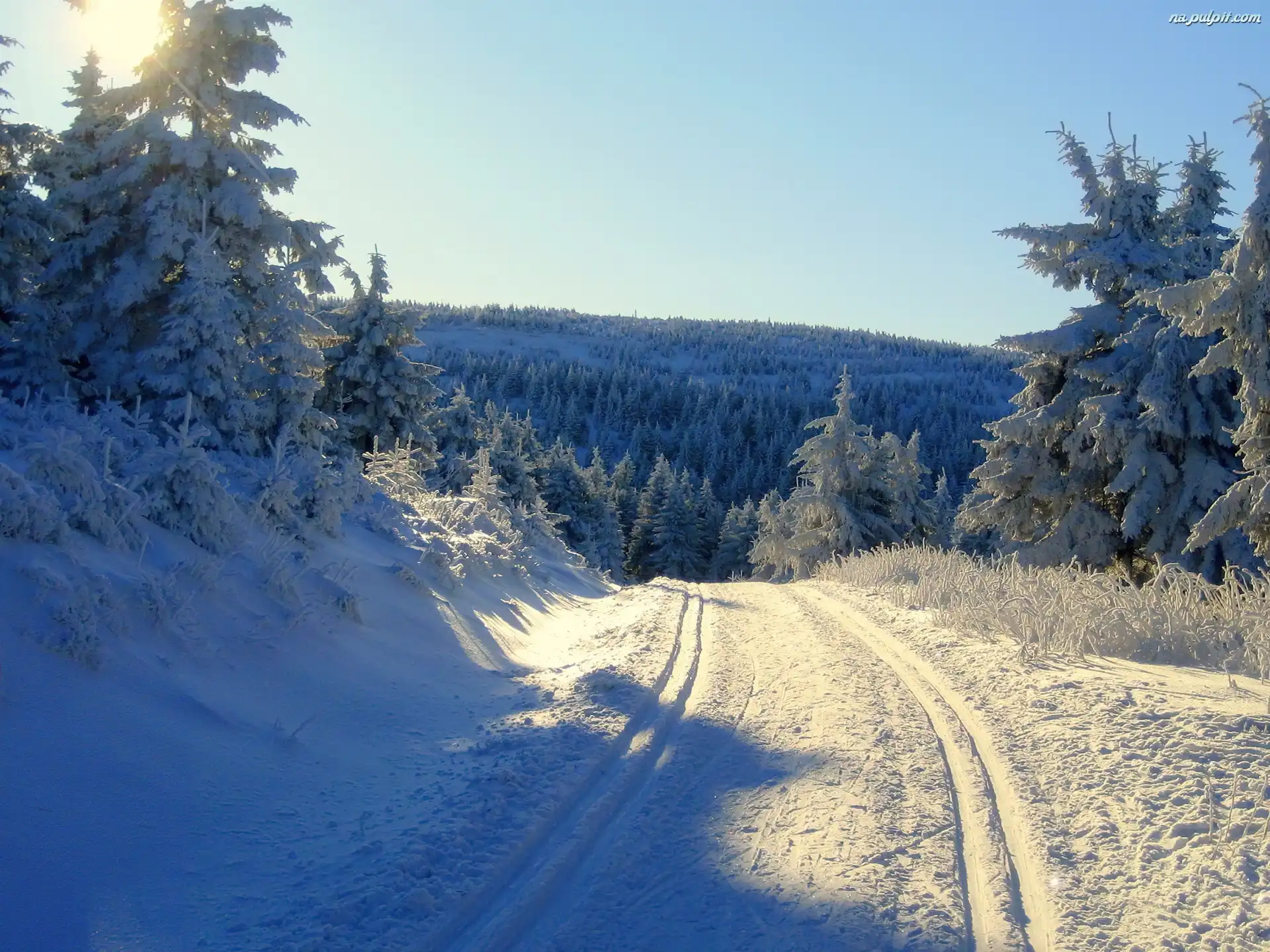 Śnieg, Las, Zima, Droga