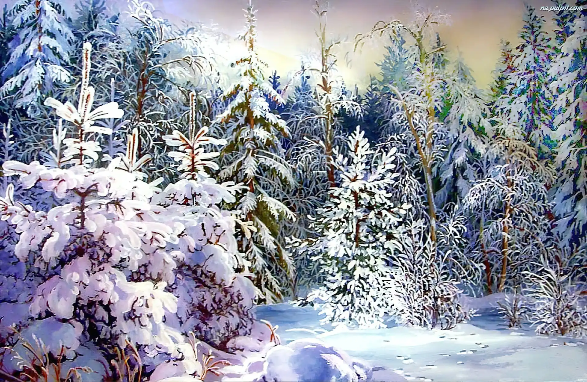 Zima, Ośnieżone, Las, Choinki Na Pulpit