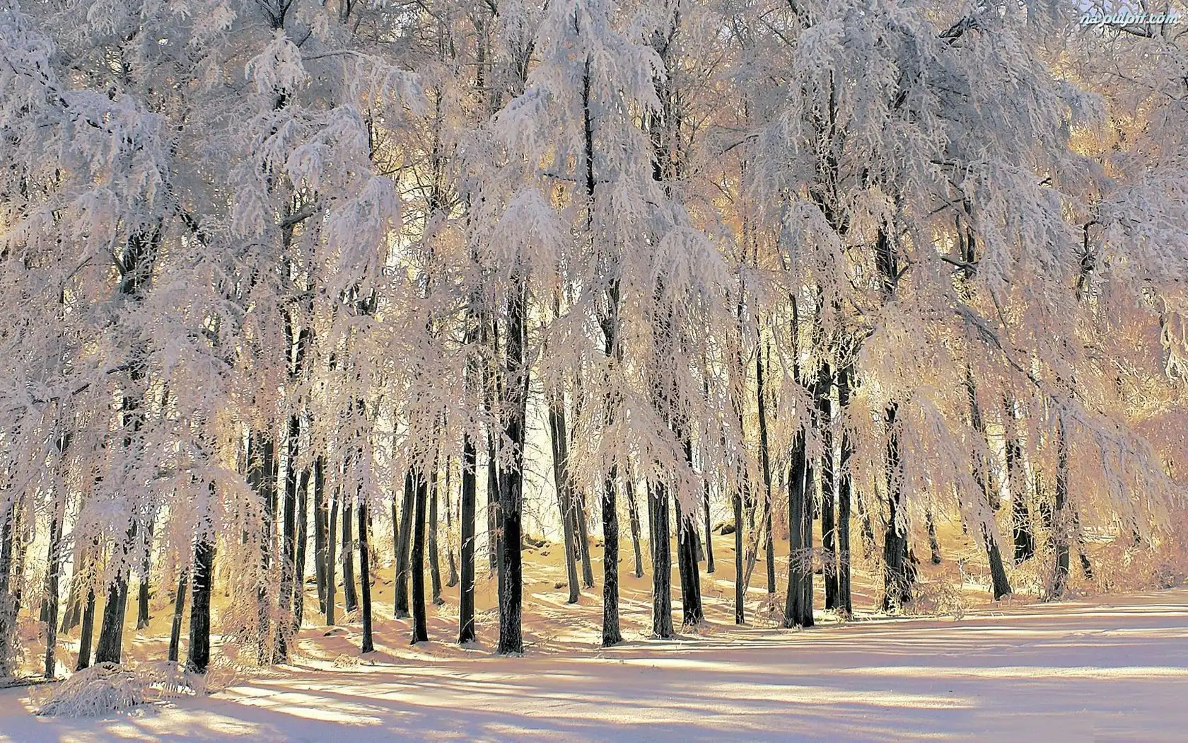 Zima, Ośnieżone, Las, Drzewa Na Pulpit