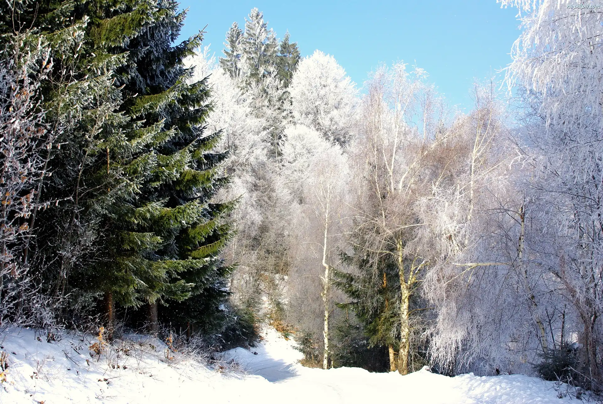 Zima, Drzewa, Ośnieżone, Las, Droga Na Pulpit