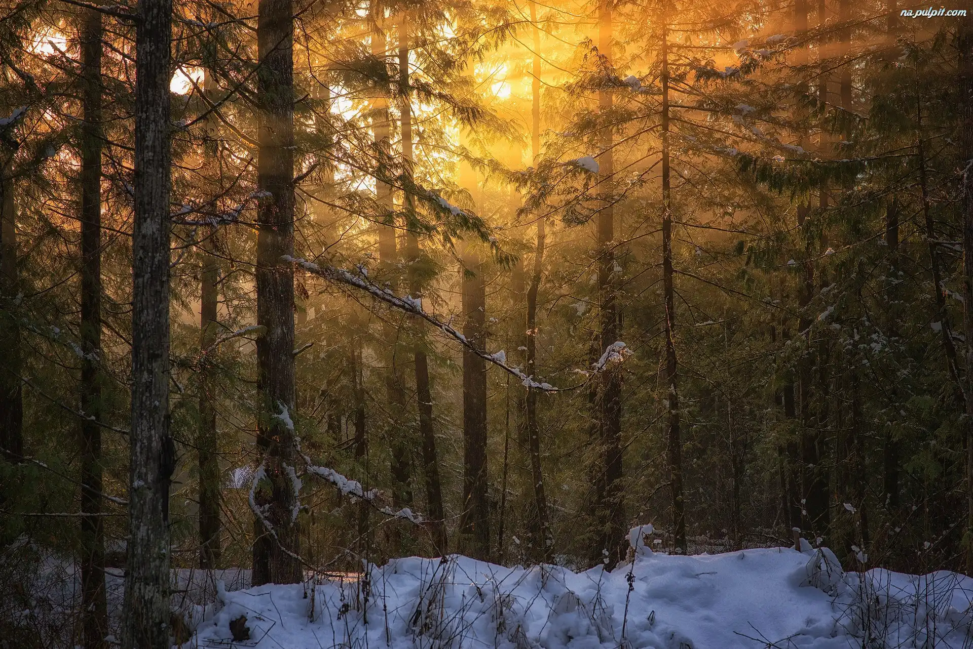 Zima, Przebijające, Las, Światło