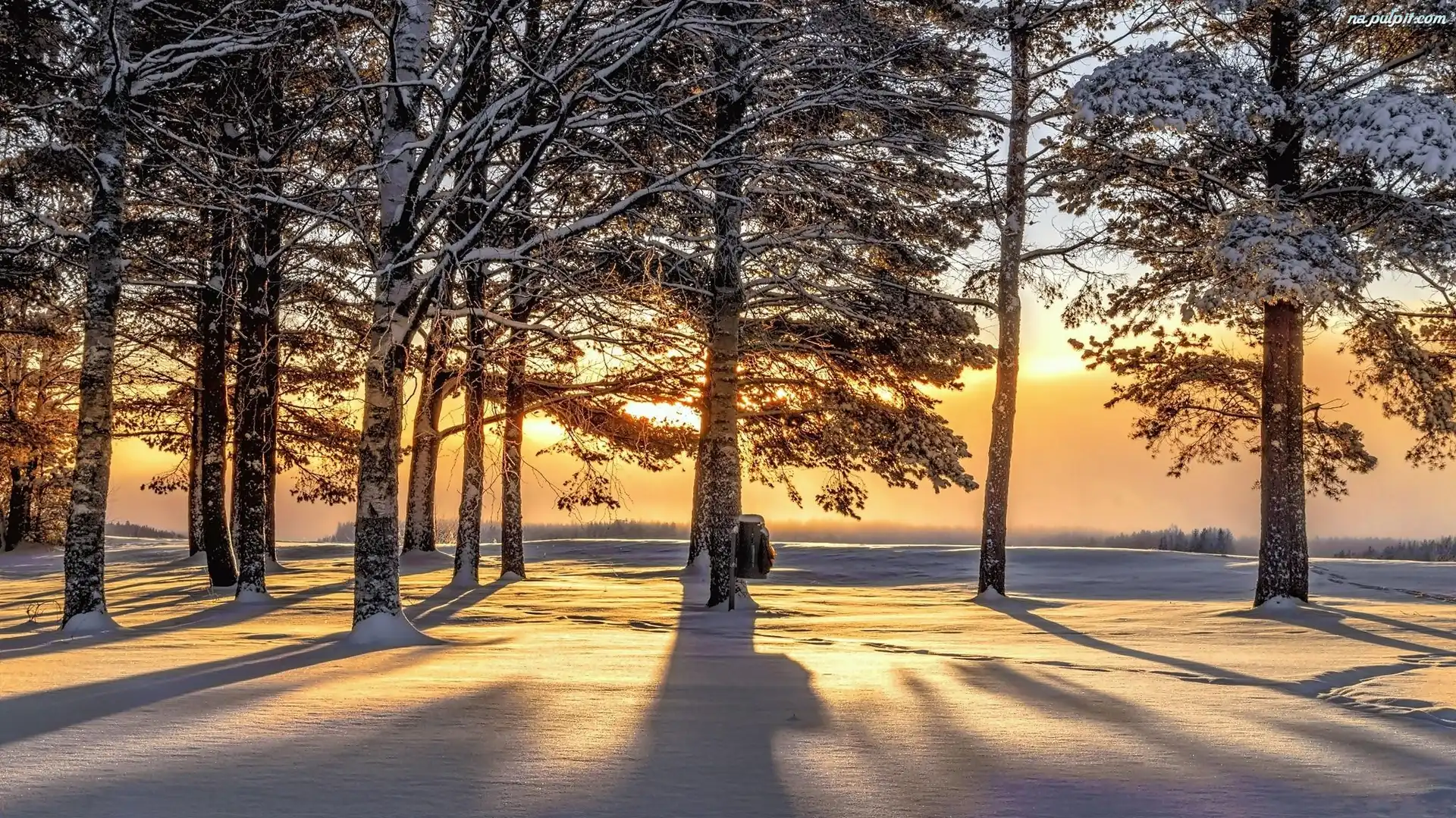 Zima, Przebijające światło, Drzewa, Las, Świt Na Pulpit