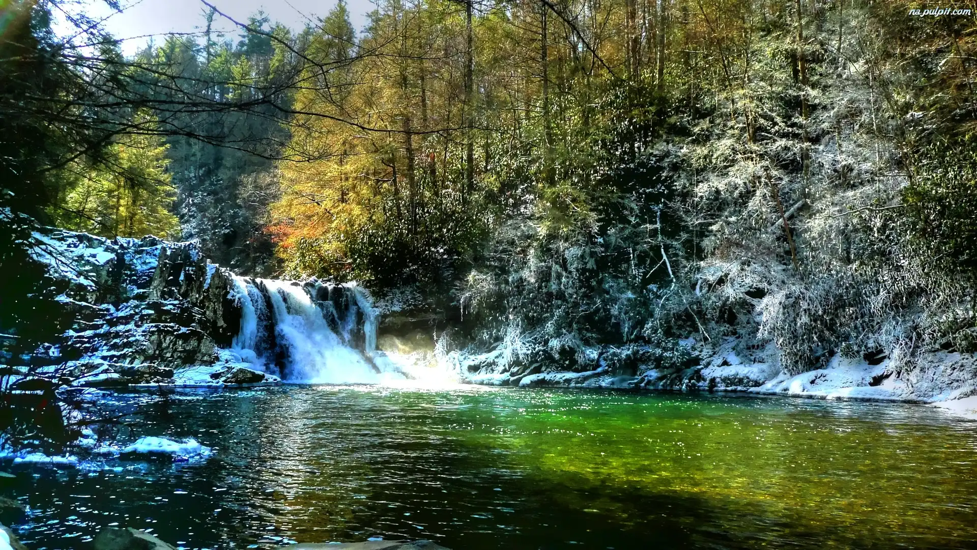 Zima, Wodospad, Las, Rzeka Na Pulpit