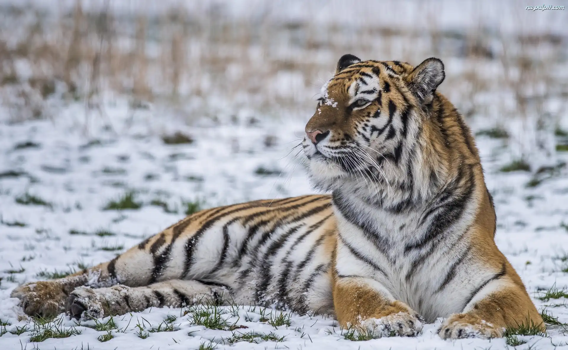 Zima, Tygrys, Leżący, Śnieg Na Pulpit