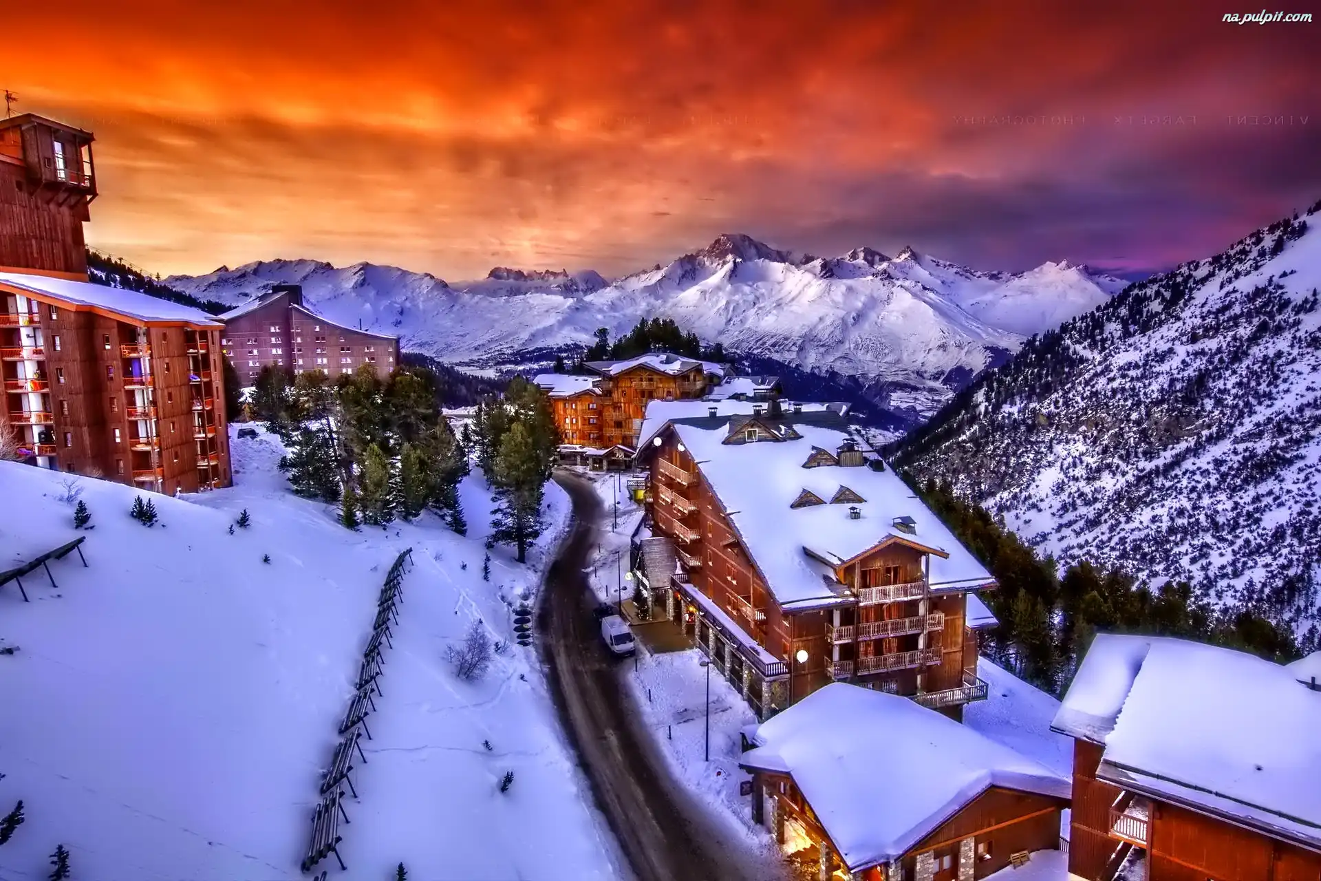 Zima, Góry, Miasteczko, Droga Na Pulpit
