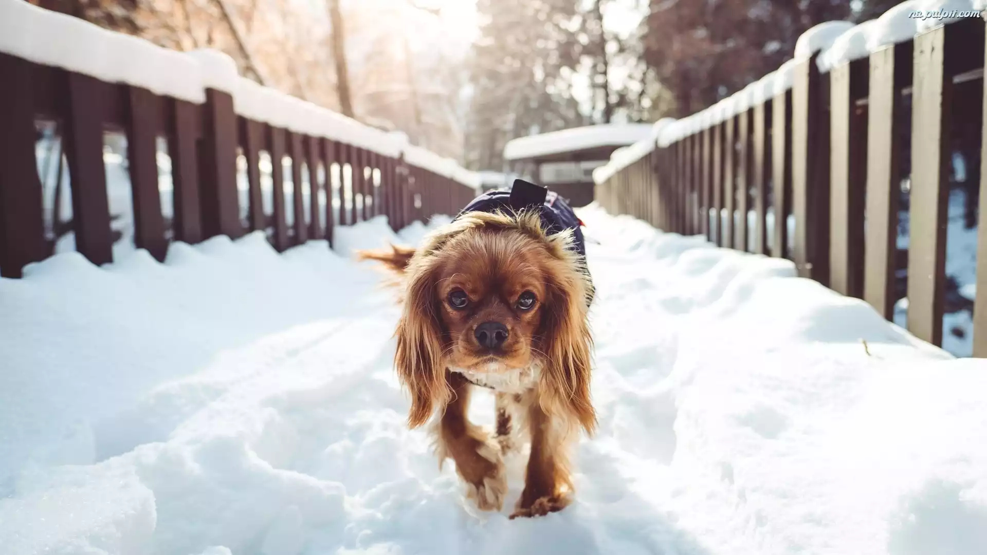 Mały, Zima, Most, Pies, Śnieg Na Pulpit
