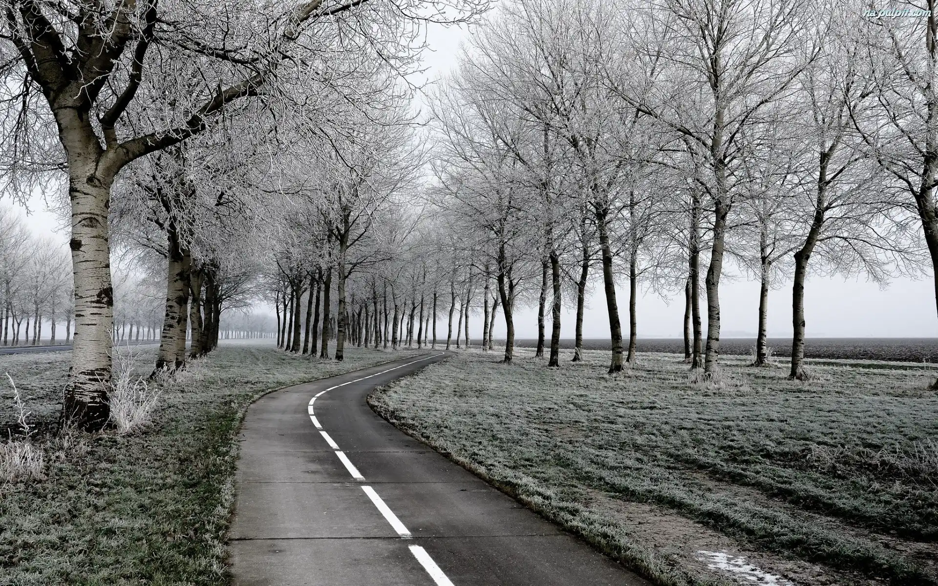 Zima, Szron, Drzewa, Mróz, Droga
