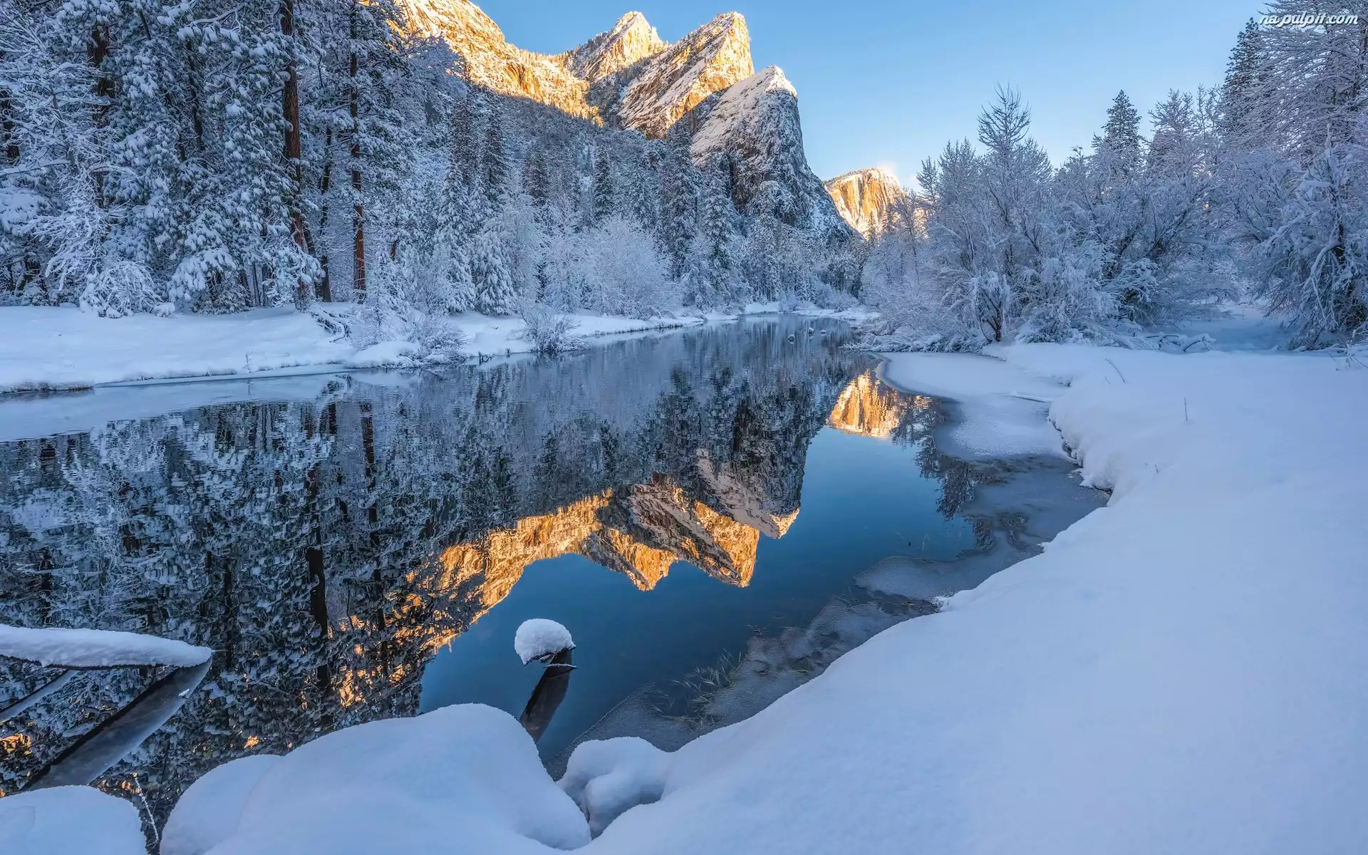 Rzeka, Park Narodowy Yosemite, Merced River, Stany Zjednoczone, Drzewa, Zima, Kalifornia, Góry Na Pulpit |