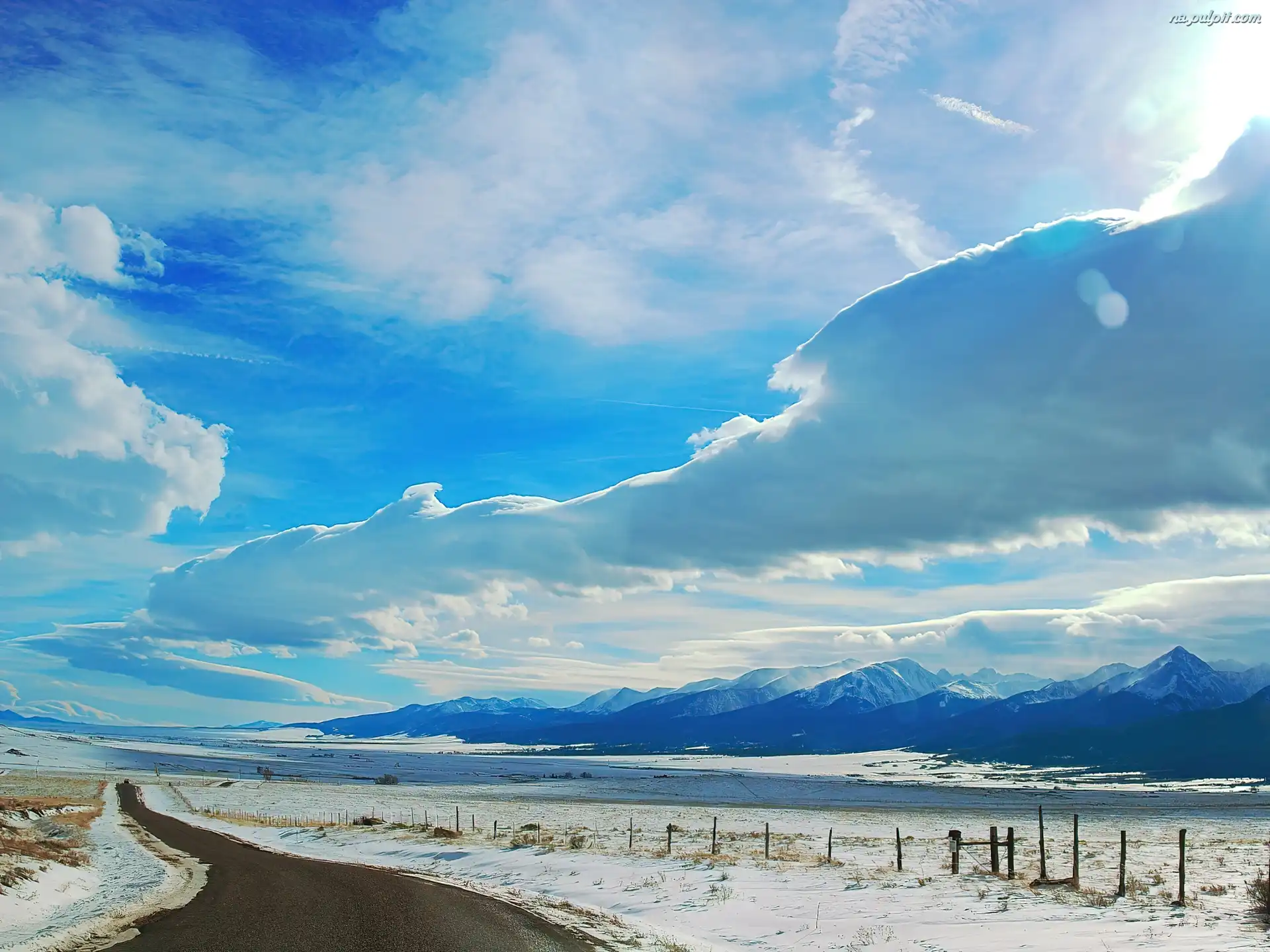Niebo, Chmury, Droga, Zima Na Pulpit