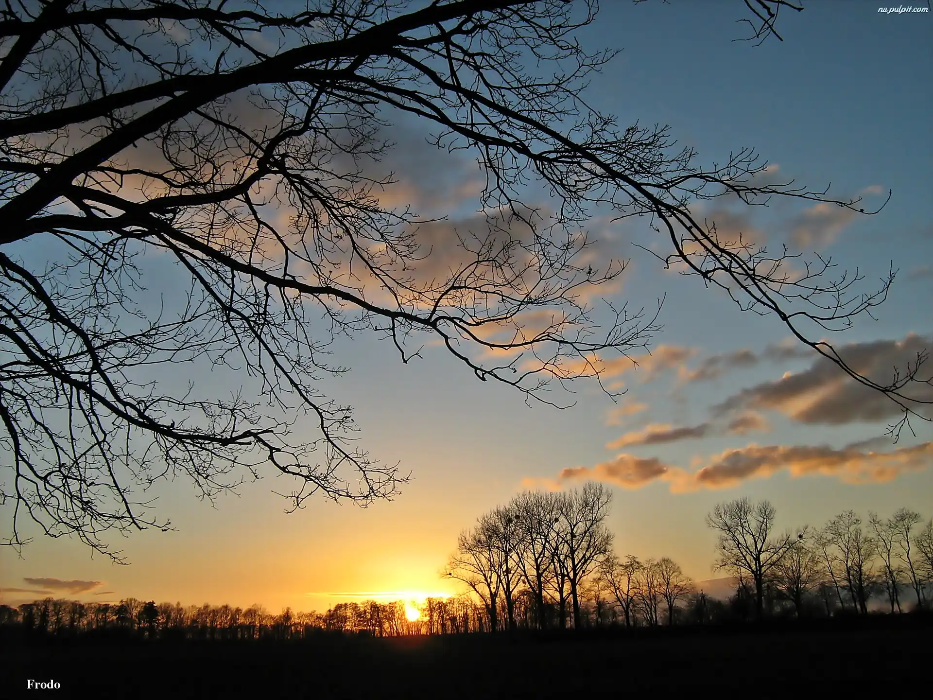 Niebo, Zima, Krajobraz, Chmury, Drzewa, Zachód Słońca Na Pulpit