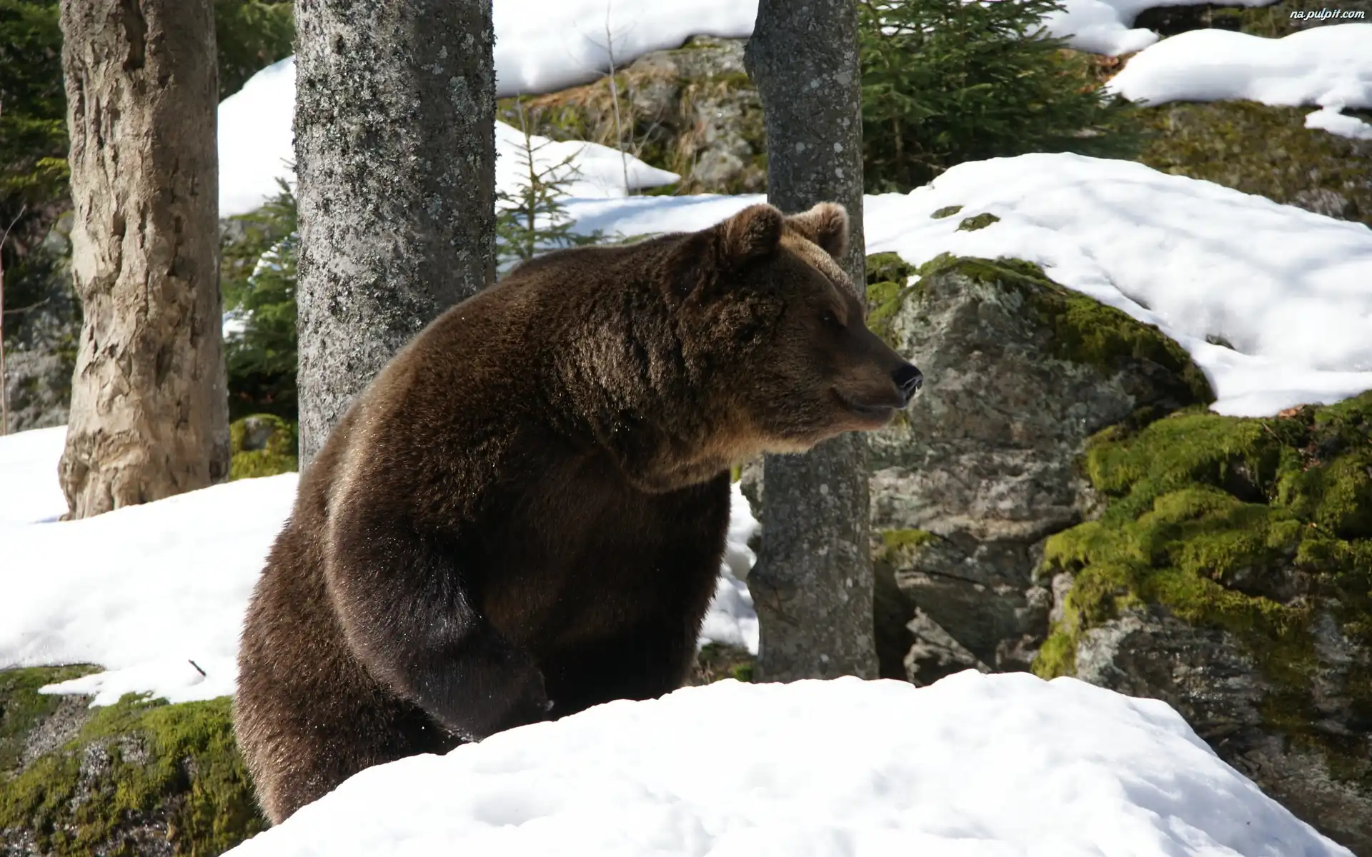 Zima, Brunatny, Niedzwiedz, Skały Na Pulpit