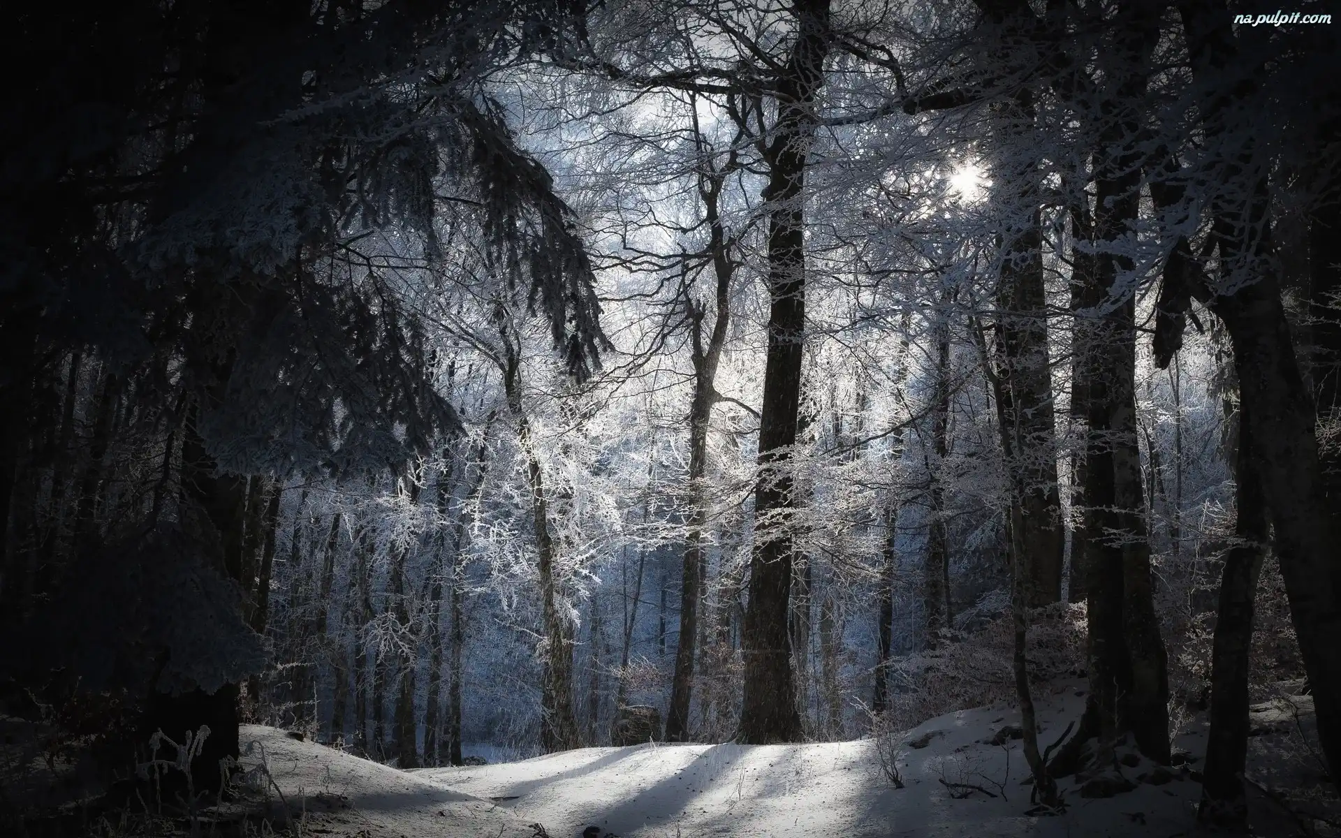 Światło, Śnieg, Las, Zima, Przebijające Na Pulpit