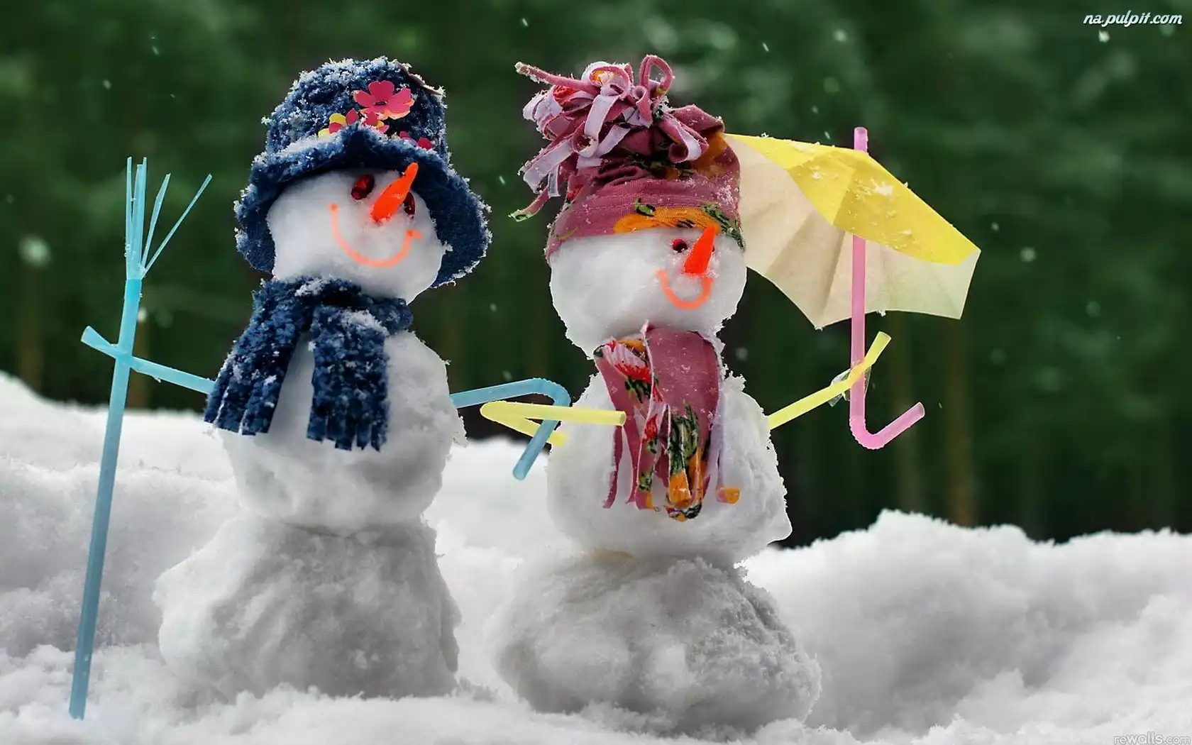 Zima, Bałwanki, Śniegowe, Parasolka