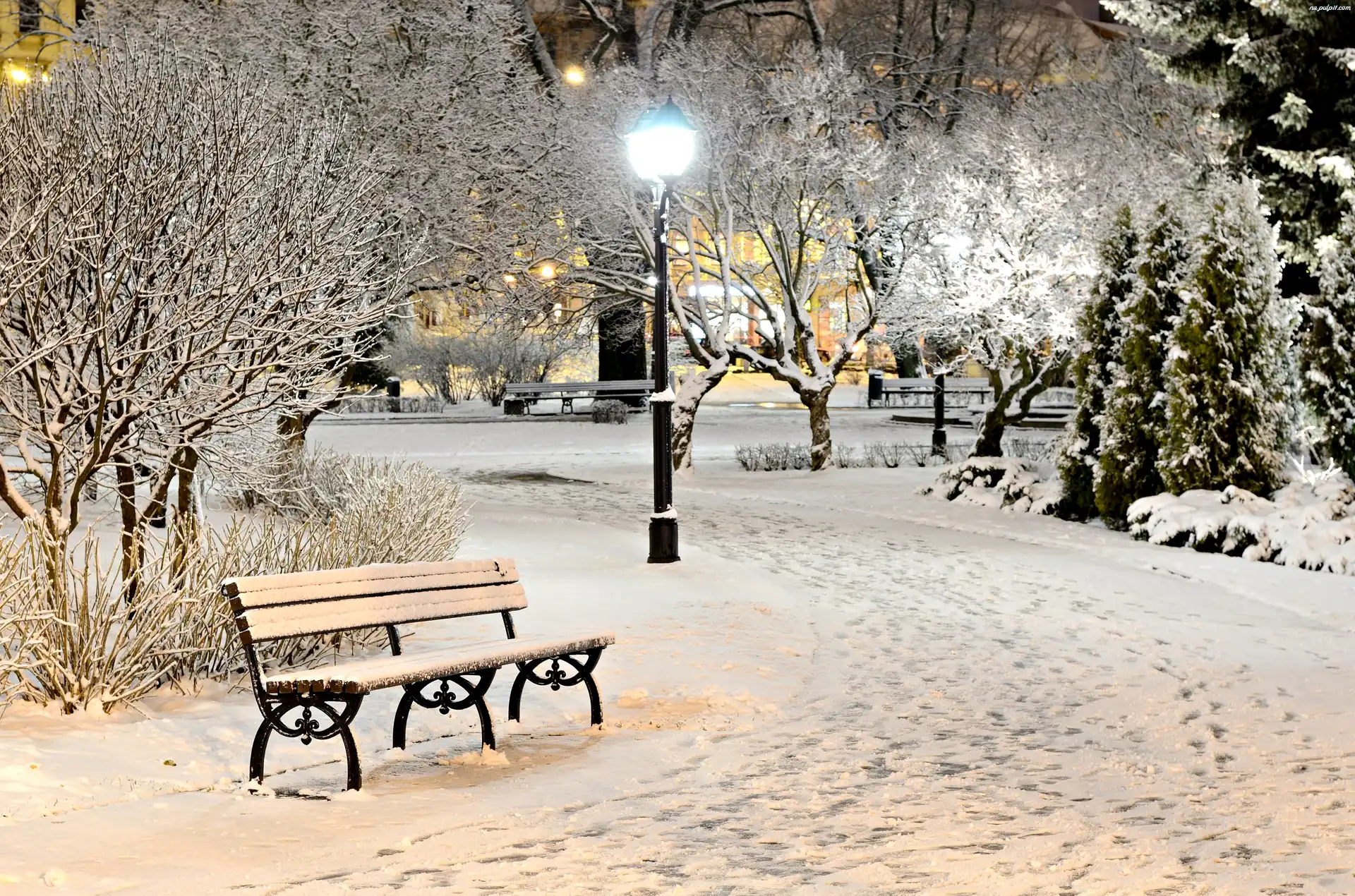 Zima, Latarnie, Alejki, Park, Ławki Na Pulpit
