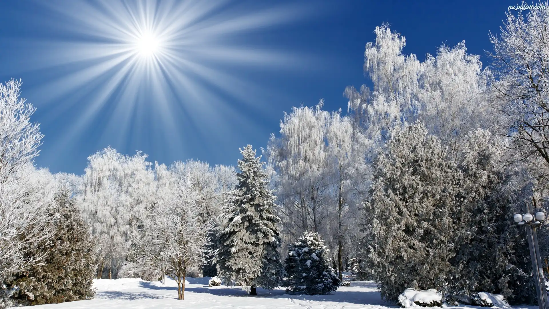 Zima, Promienie, Drzewa, Park, Słońca Na Pulpit