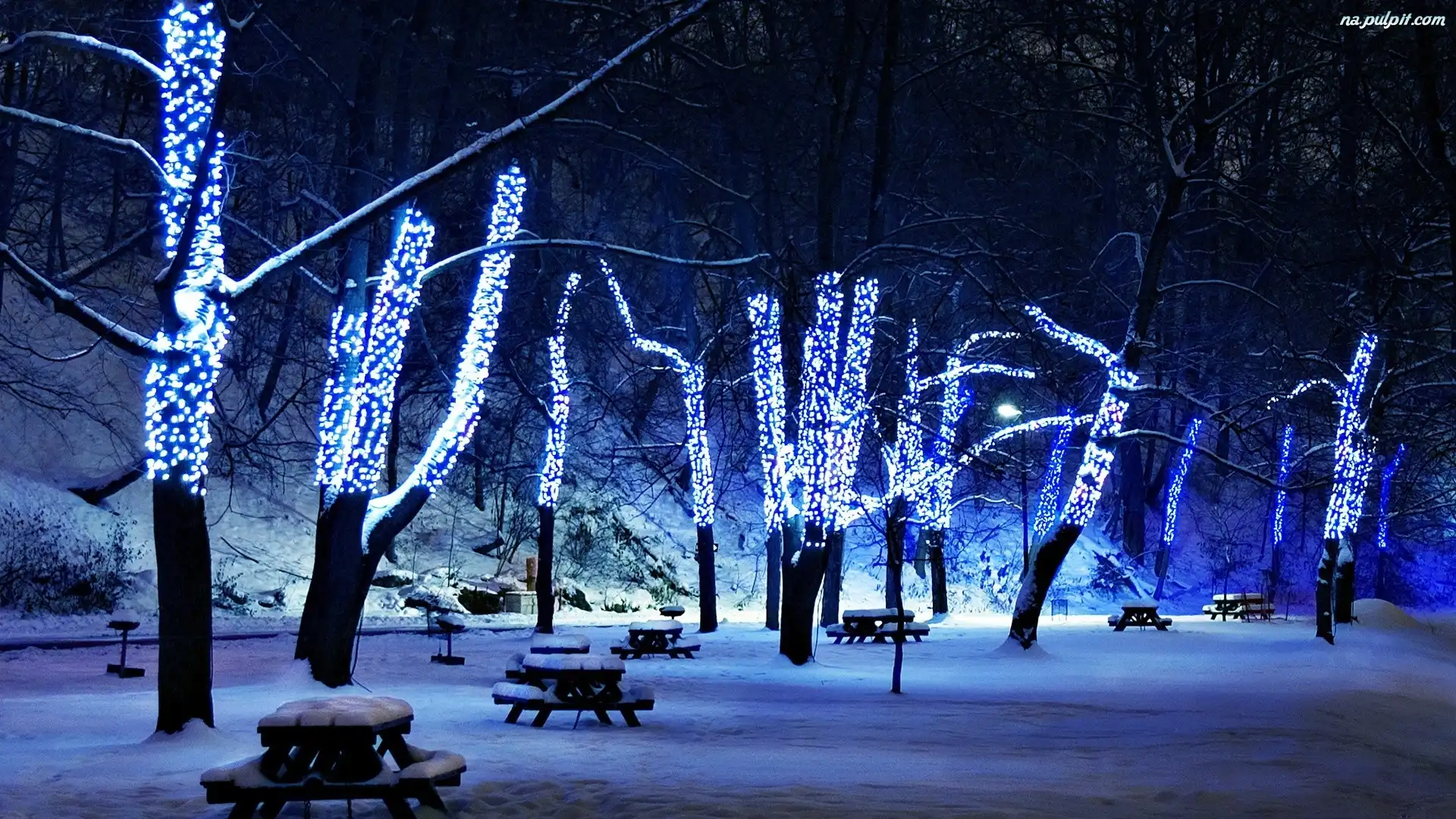 Światełka, Park, Zima, Noc Na Pulpit