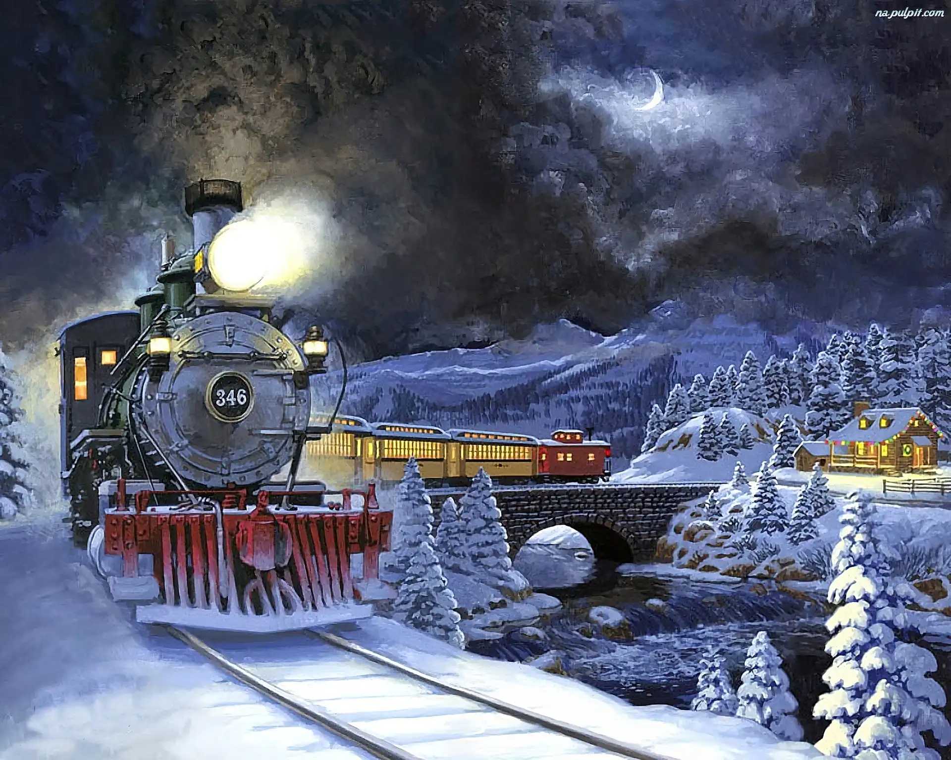 Zima, Noc, Pociąg, Góry Na Pulpit