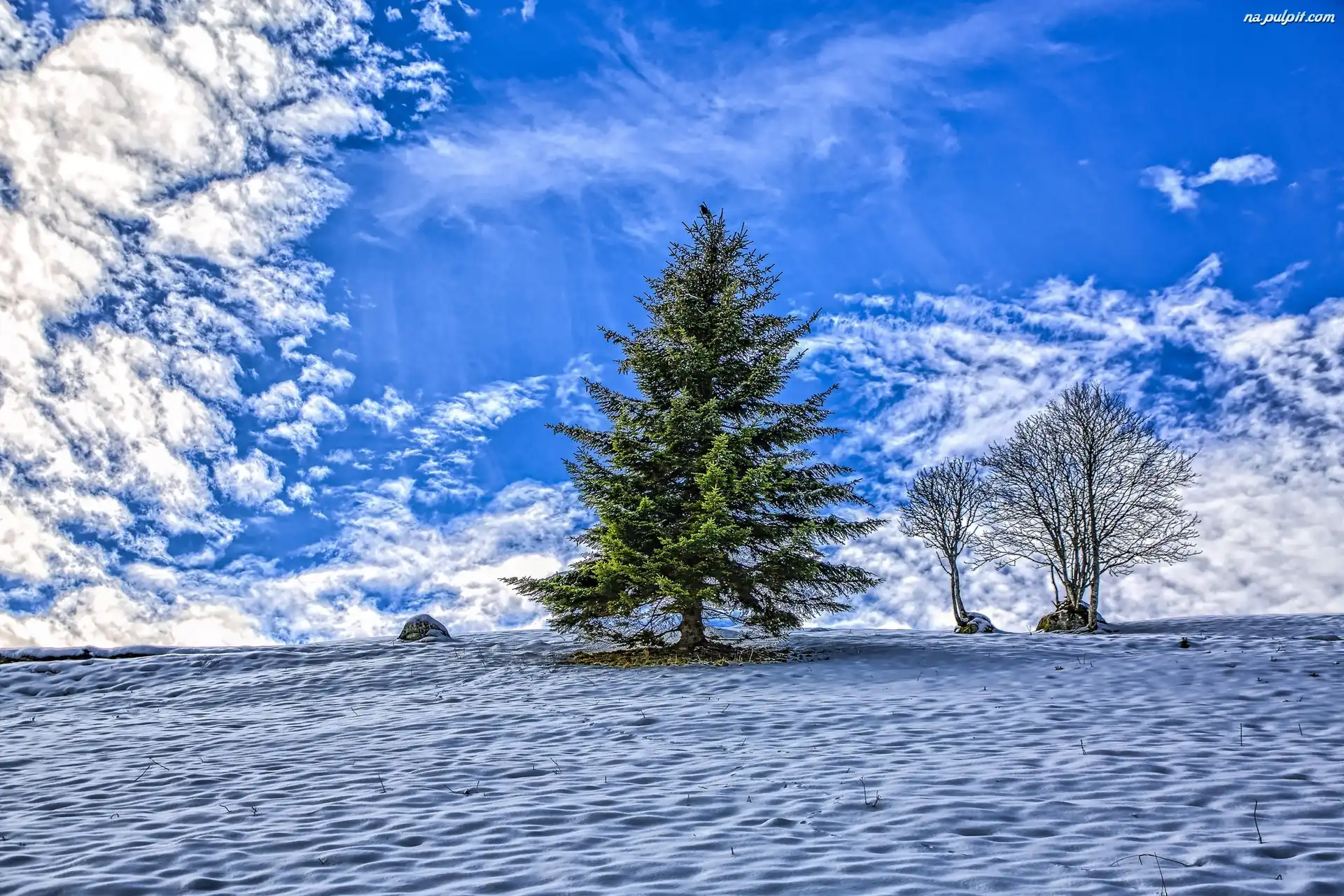 Zima, Drzewa, Pola, Chmury Na Pulpit