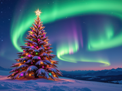 Boże Narodzenie, Choinka, Zima, Zorza polarna