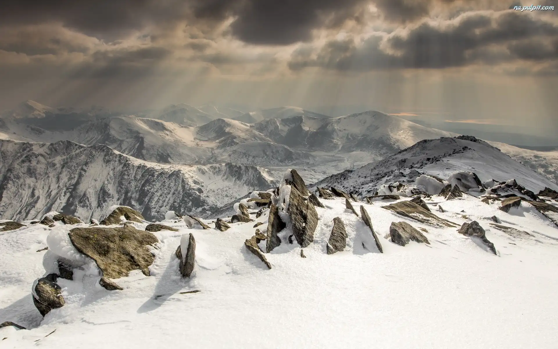Zima, Góry, Słońca, Promienie, Śnieg Na Pulpit