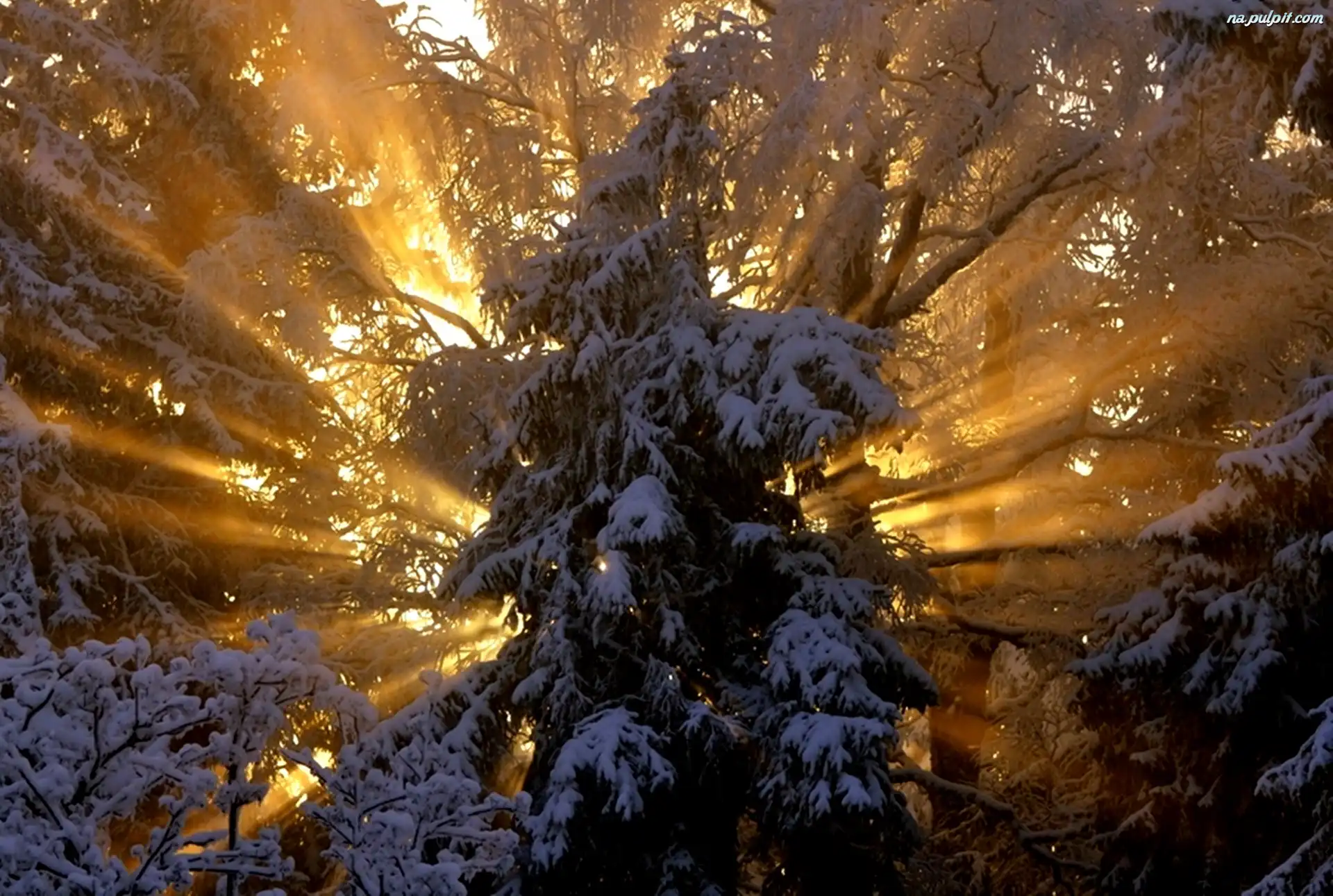Zima, Słońca, Promienie, Świerk Na Pulpit