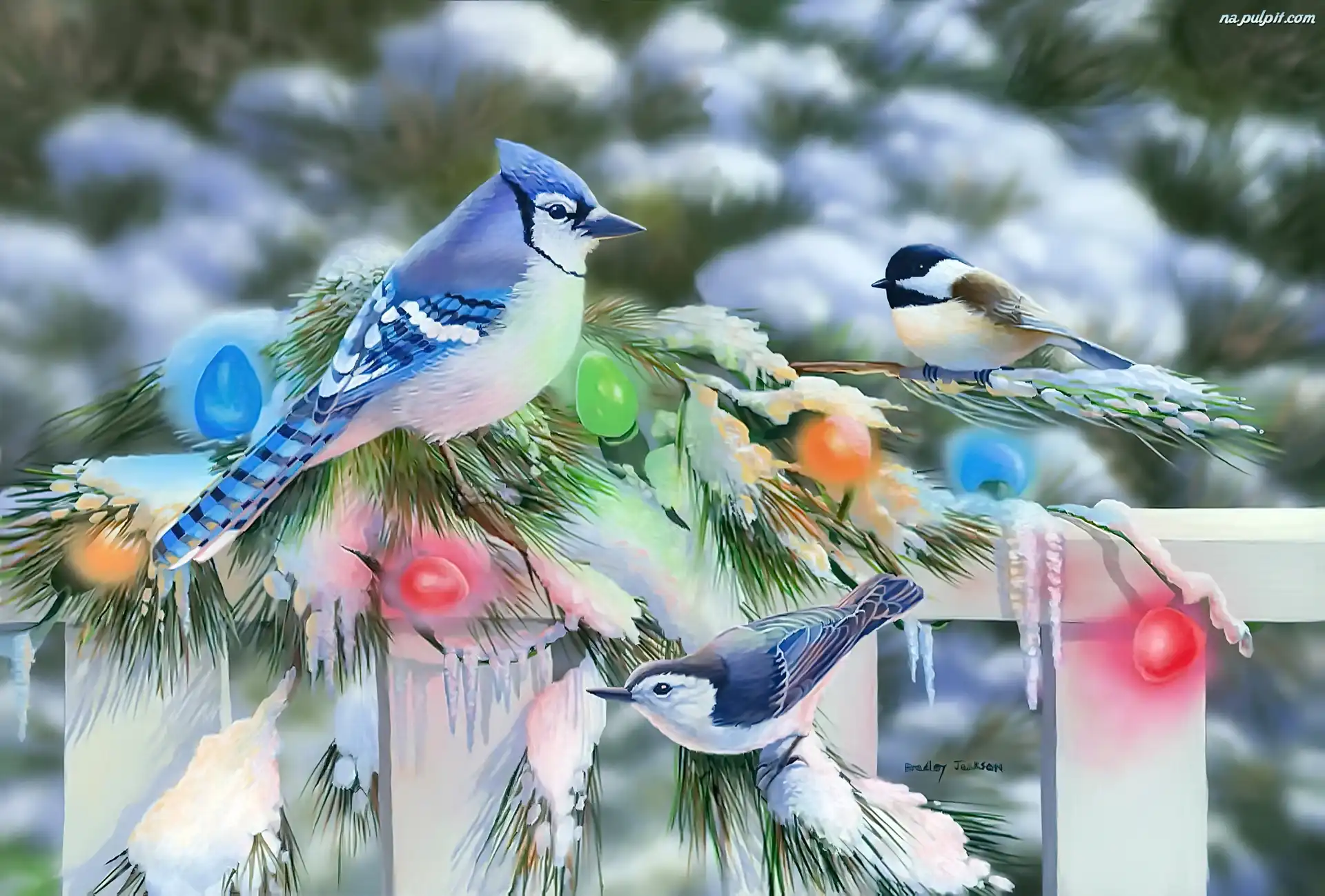 Światełka, Ptaki, Zima, Płot Na Pulpit