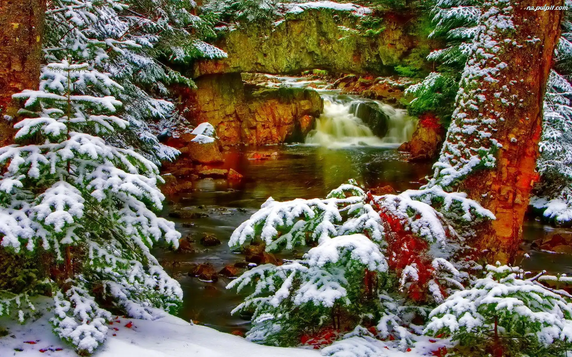 Zima, Skały, Las, Rzeczka, Drzewa Na Pulpit