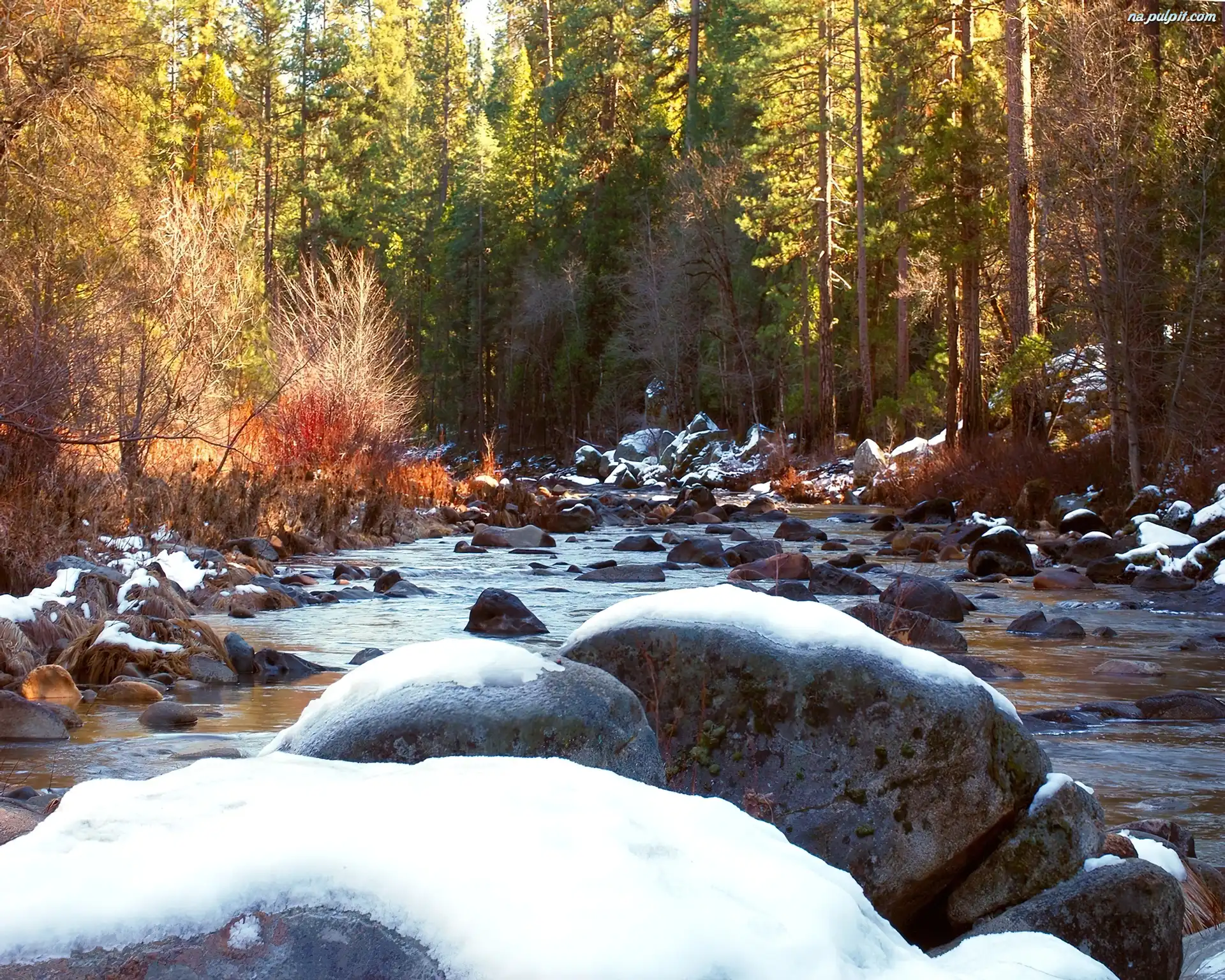 Zima, Kamienie, Rzeka, Las Na Pulpit