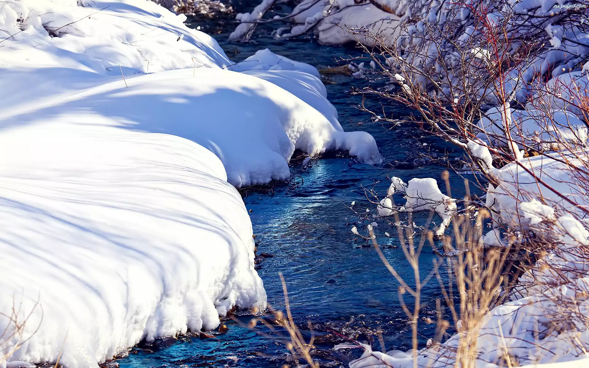 Zima, Krzewy, Rzeka, Åšnieg Na Pulpit