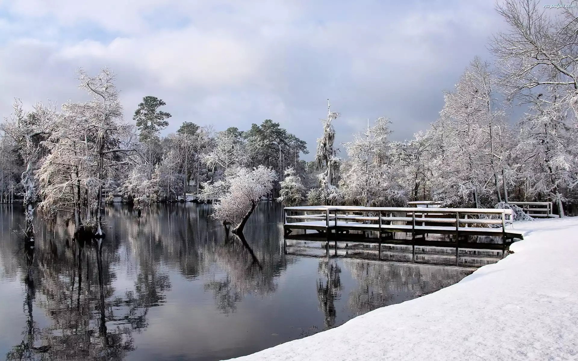 Zima, Most, Rzeka, Drzewa Na Pulpit