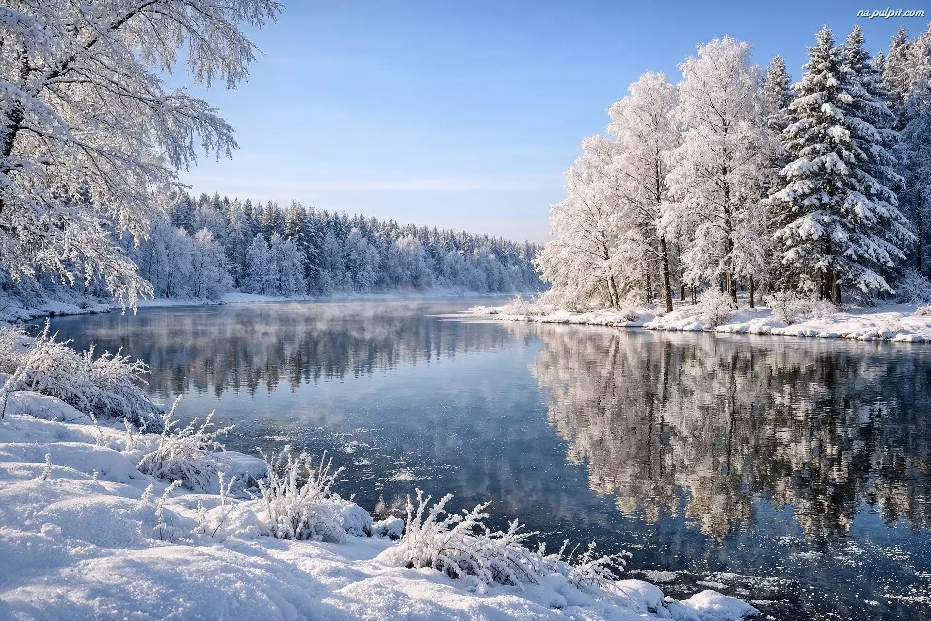 Drzewa, Zima, Rzeka, Odbicie, Oszronione Na Pulpit