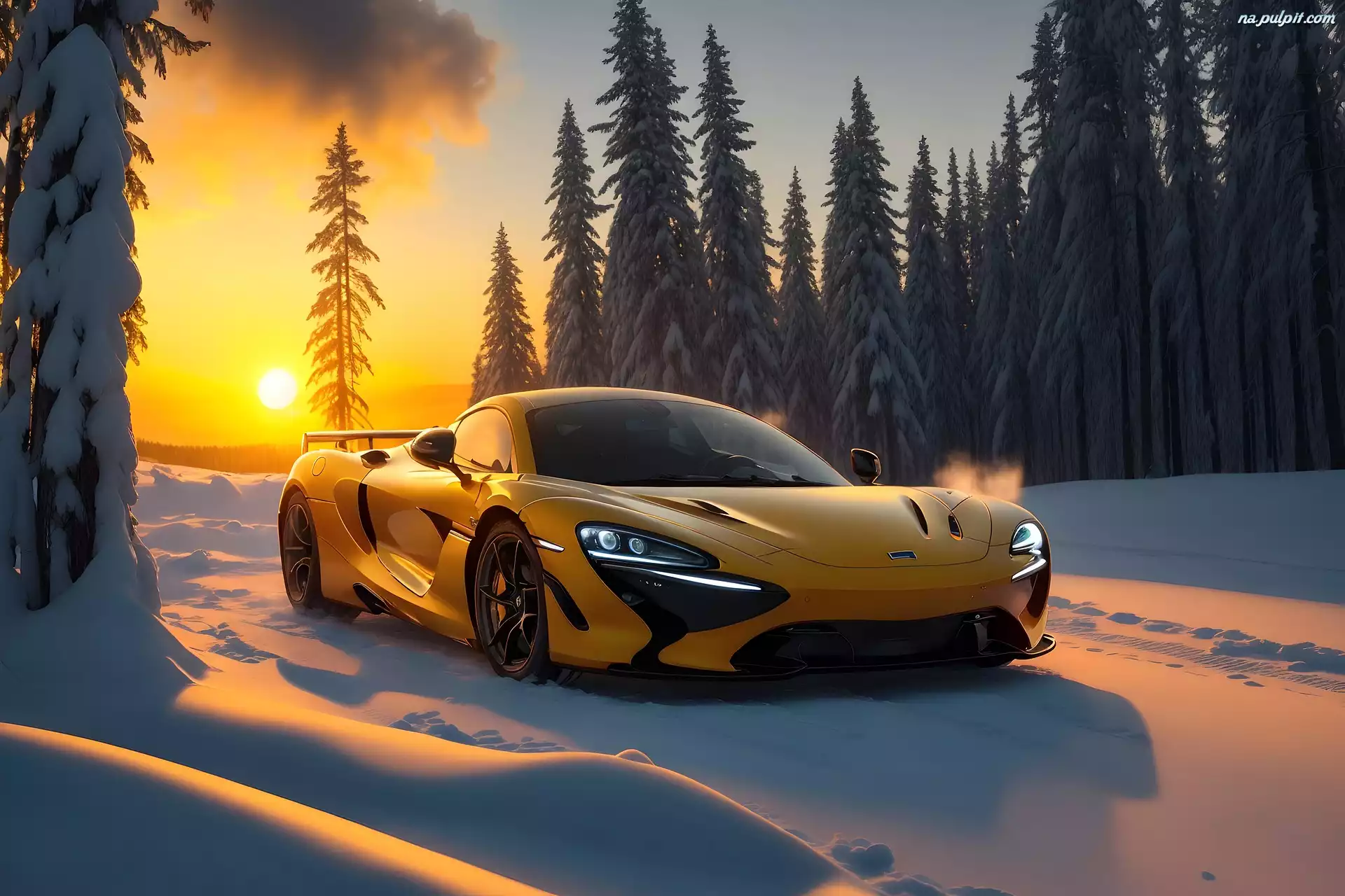 Zachód słońca, Samochód, Zima, Las, Mclaren, Grafika Na Pulpit