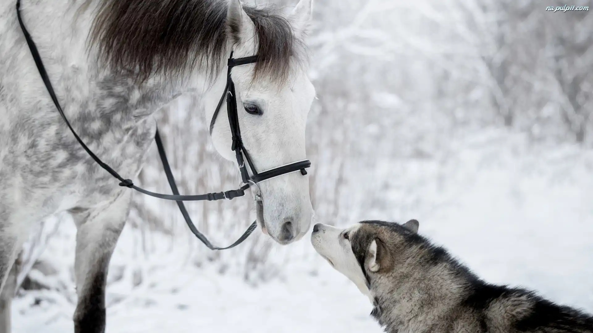 Zima, Pies, Koń, Siberian husky Na Pulpit