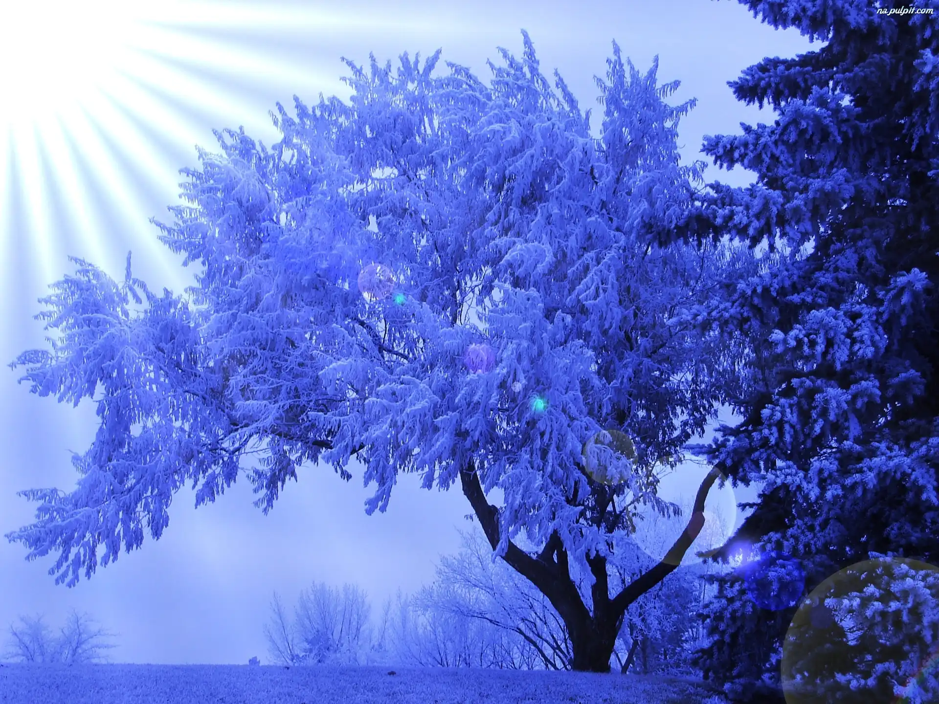 Zima, Promienie Słońca, Drzewo Na Pulpit