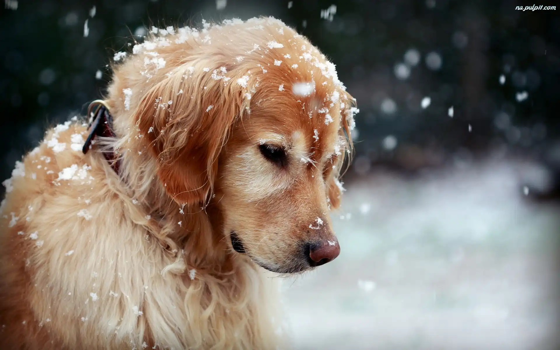 Zima, Piesek, Smutny, Śnieg Na Pulpit