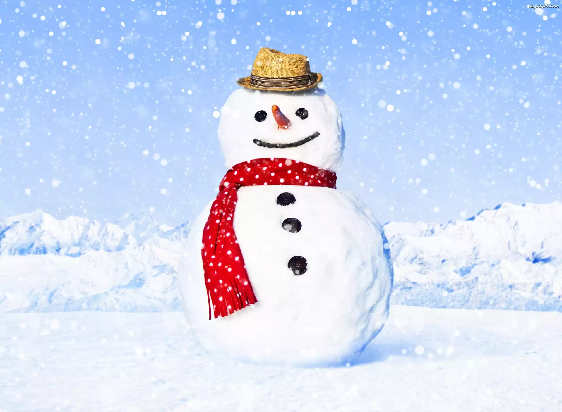 Kapelusz, Zima, Śnieg, Szalik, Bałwan Na Pulpit