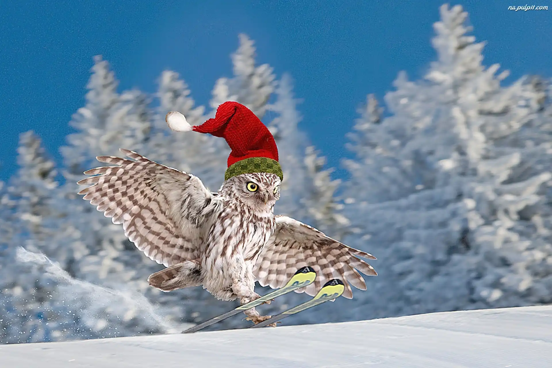 Zima, Narty, Sowa, Czapka Na Pulpit