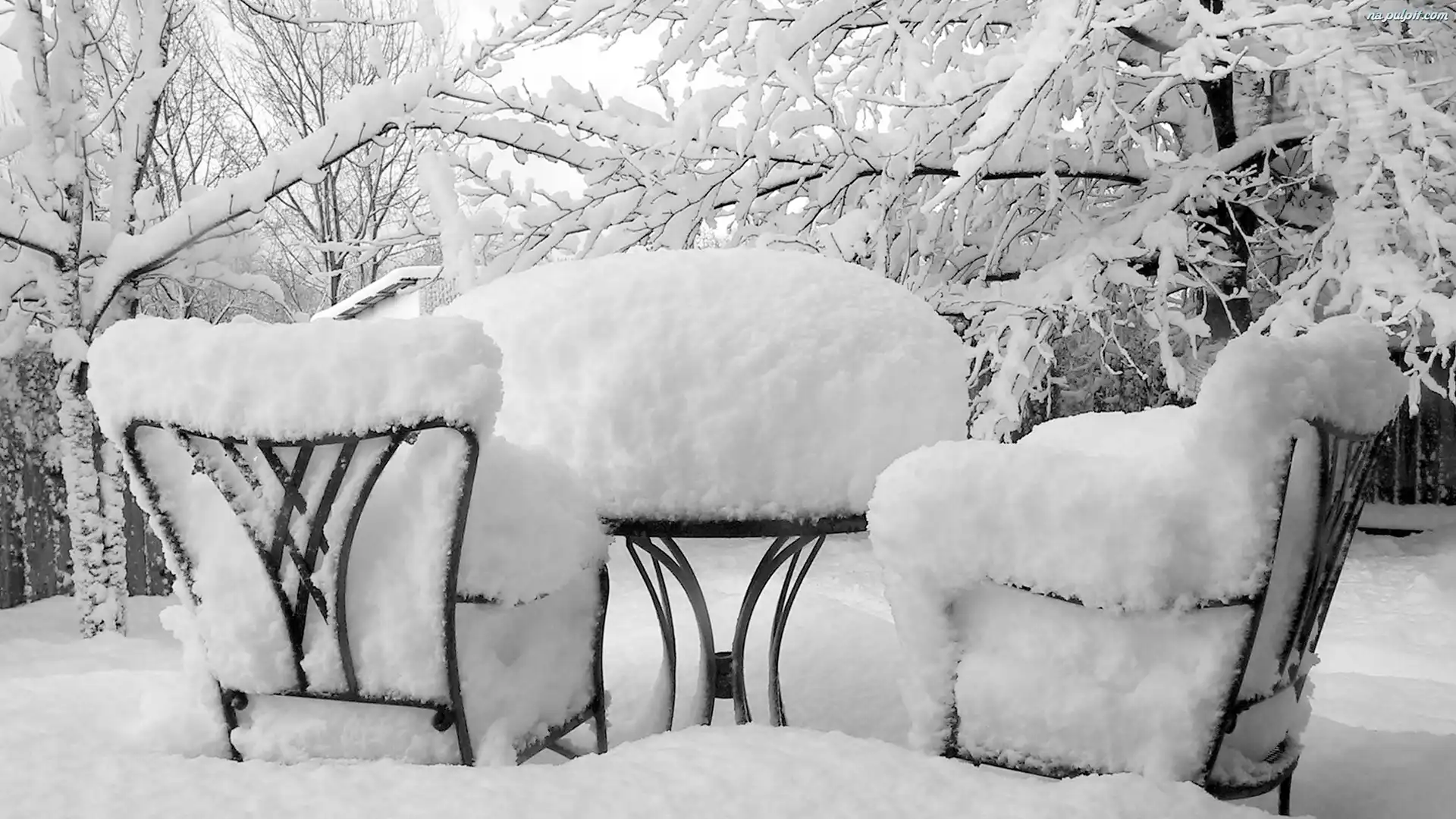 Śnieg, Stolik, Zima, Krzesła