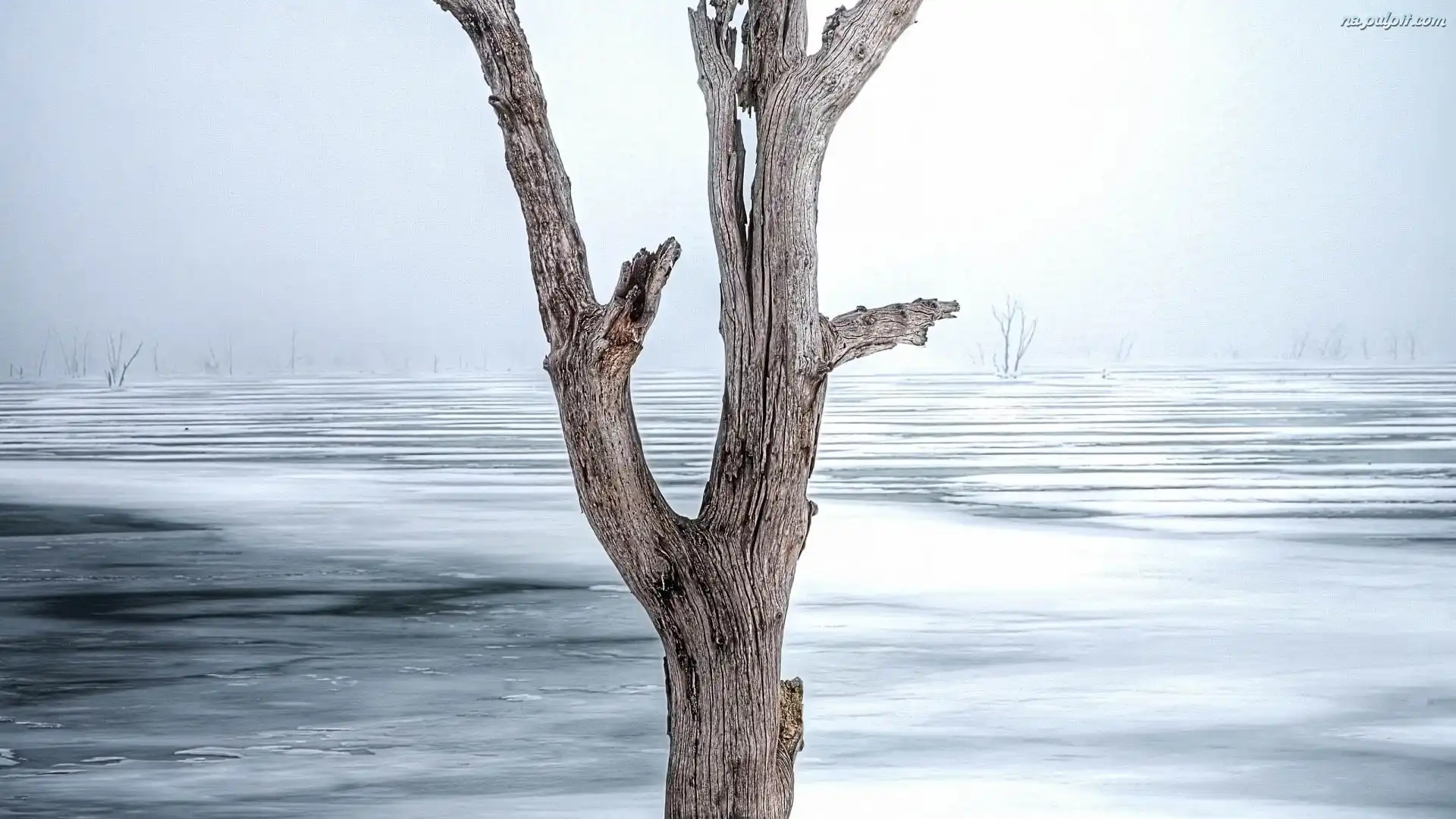 Zima, Zamarznięte, Drzewo, Suche, Jezioro