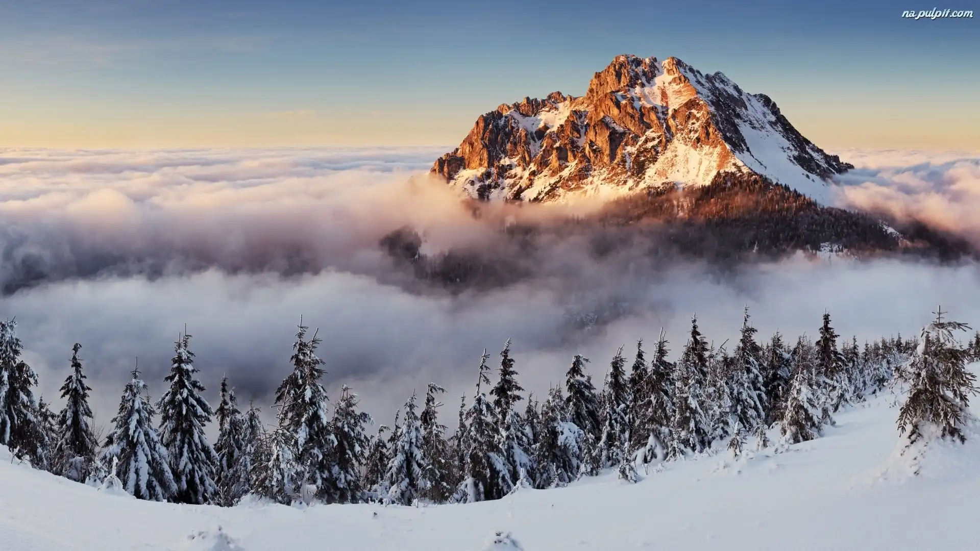 Zima, W, Góry, Szczyt, Chmurach