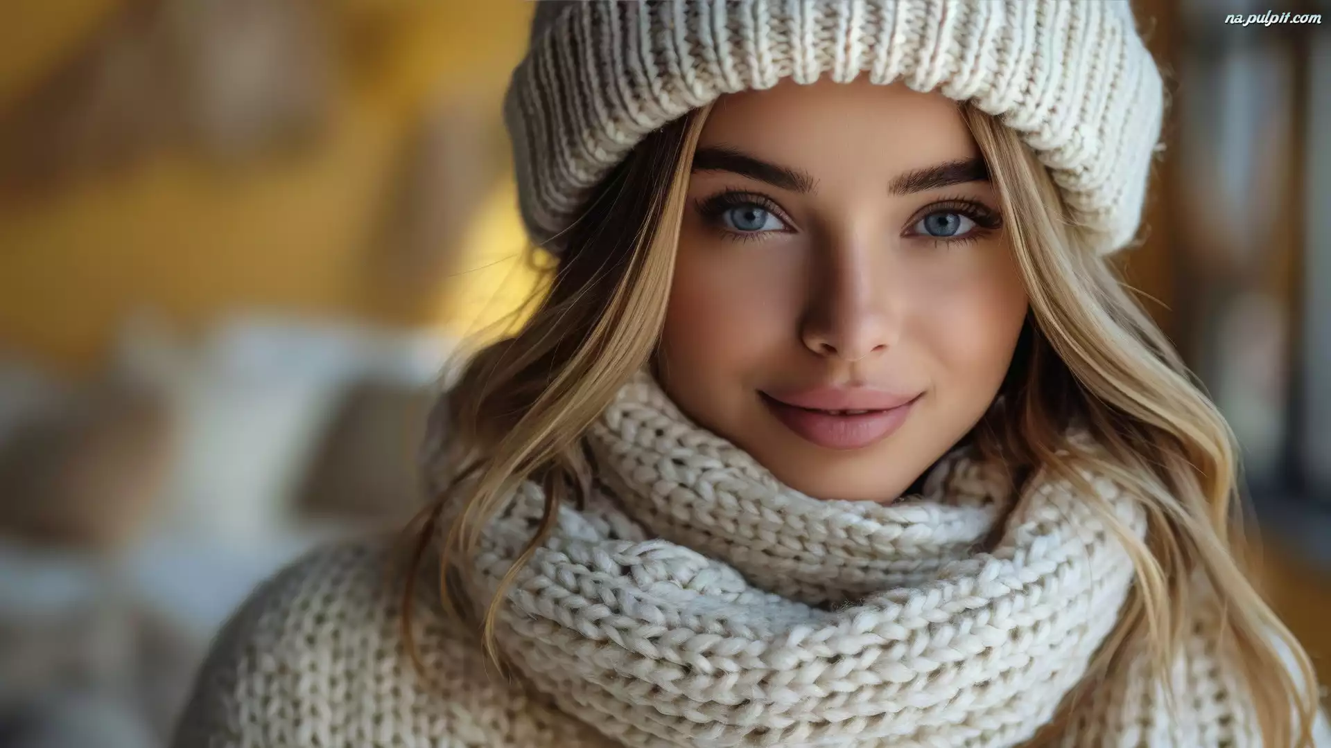 Szalik, Blondynka, Uśmiech, Zima, Dziewczyna, Twarz, Czapka Na Pulpit