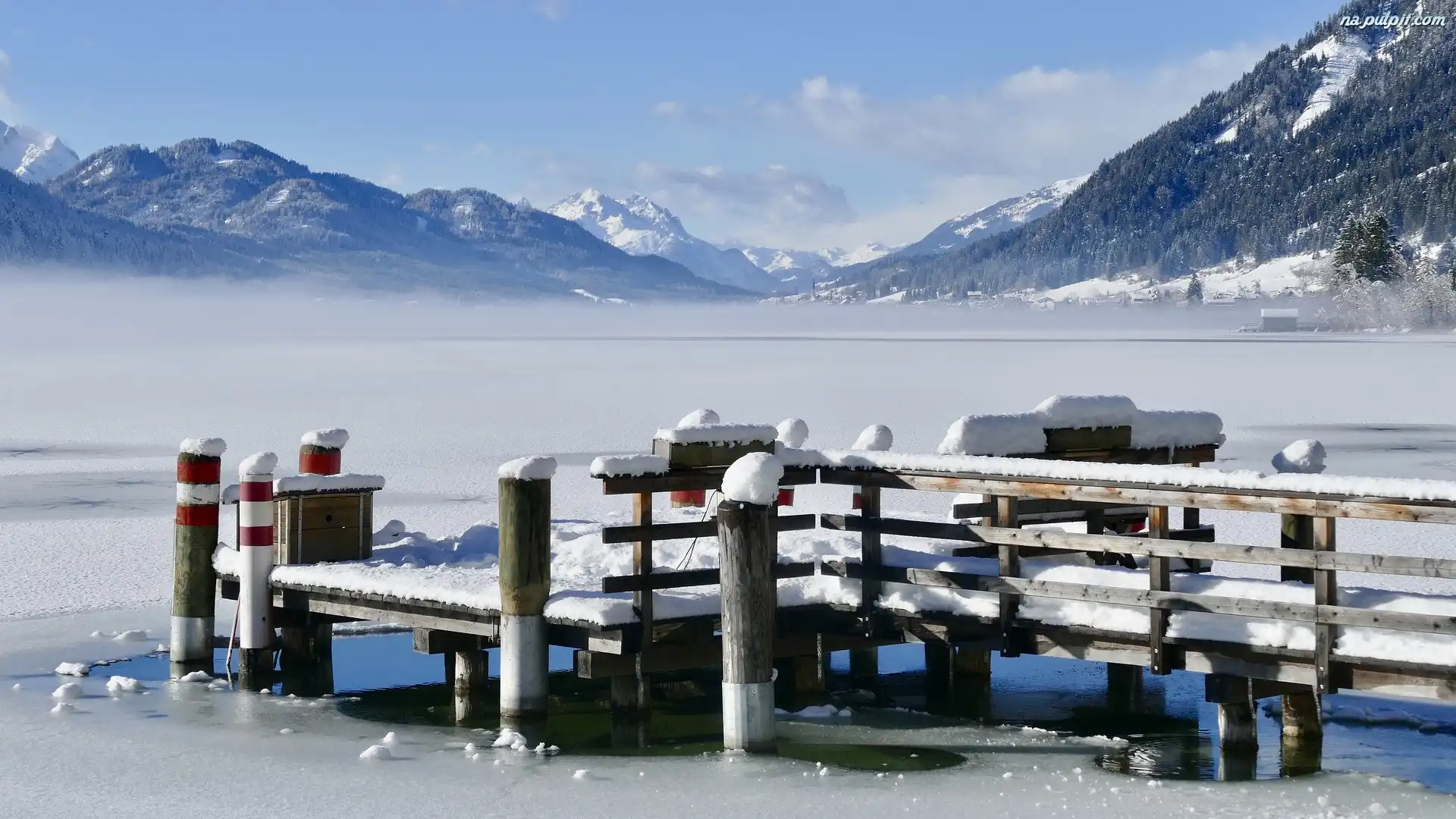 Góry, Karyntia, Pomost, Jezioro Weißensee, Alpy Gailtalskie, Austria, Zima Na Pulpit