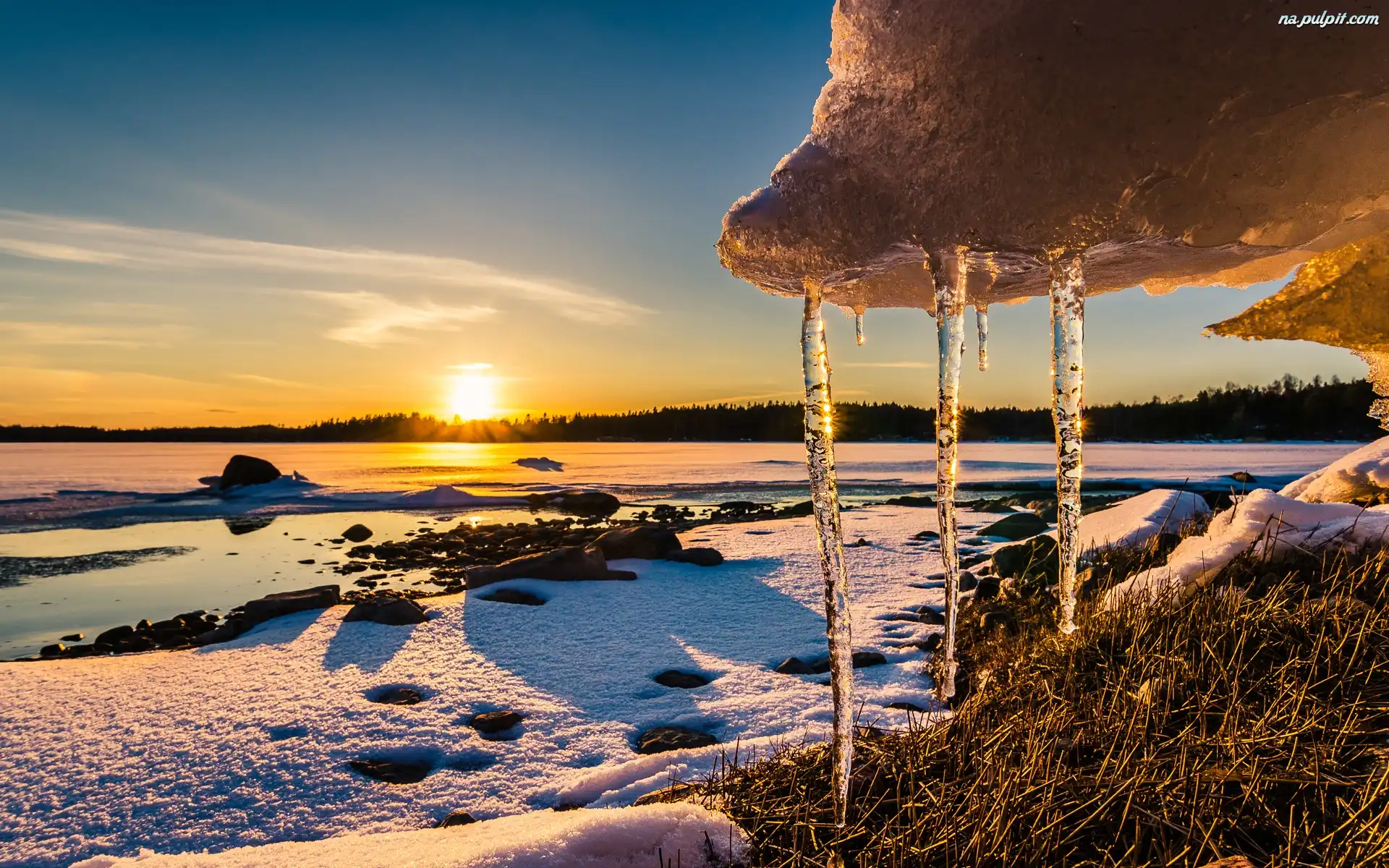 Śnieg, Wschód słońca, Zima, Sople Na Pulpit