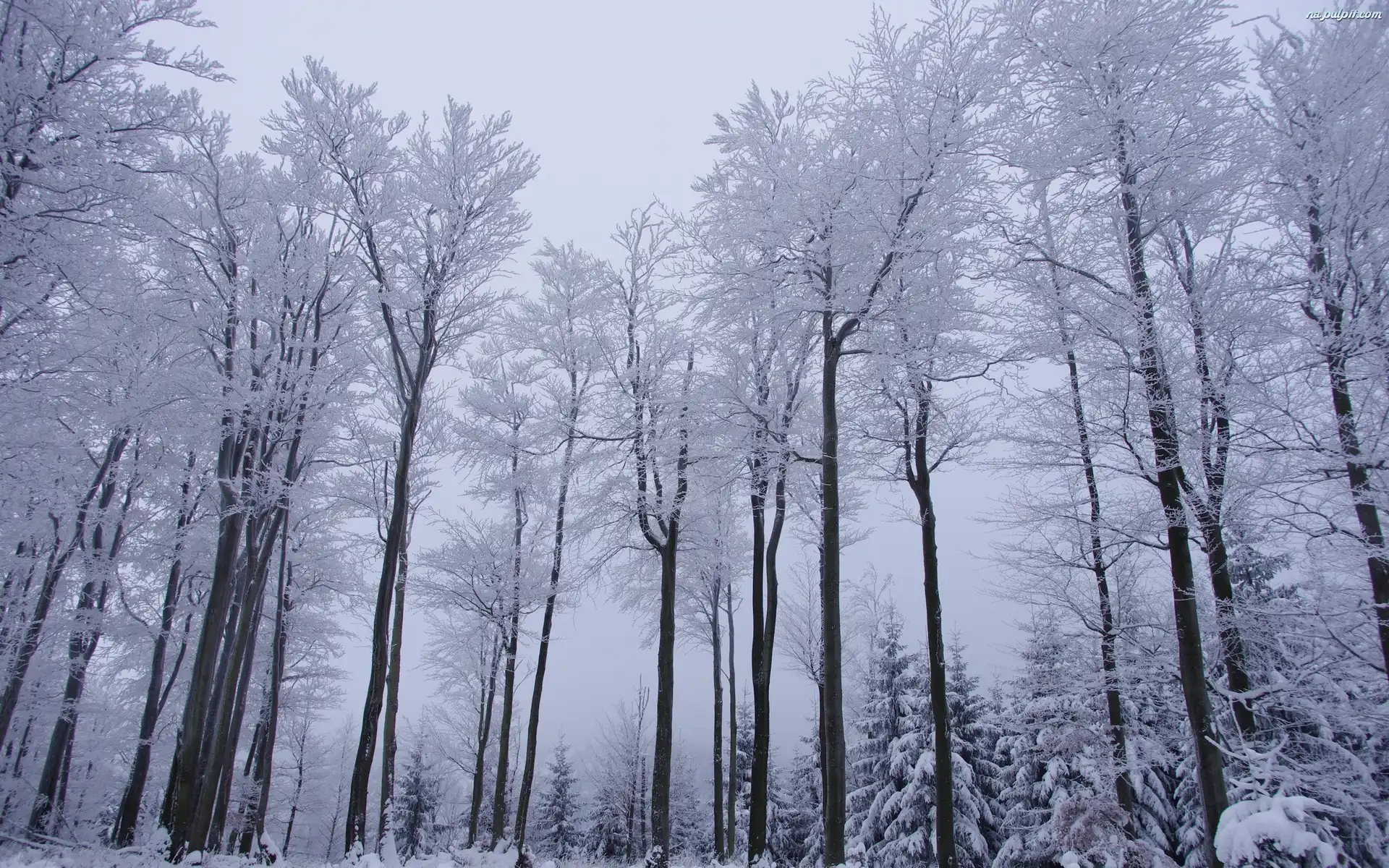 Zima, Las, Drzewa, Wysokie, Mgła Na Pulpit