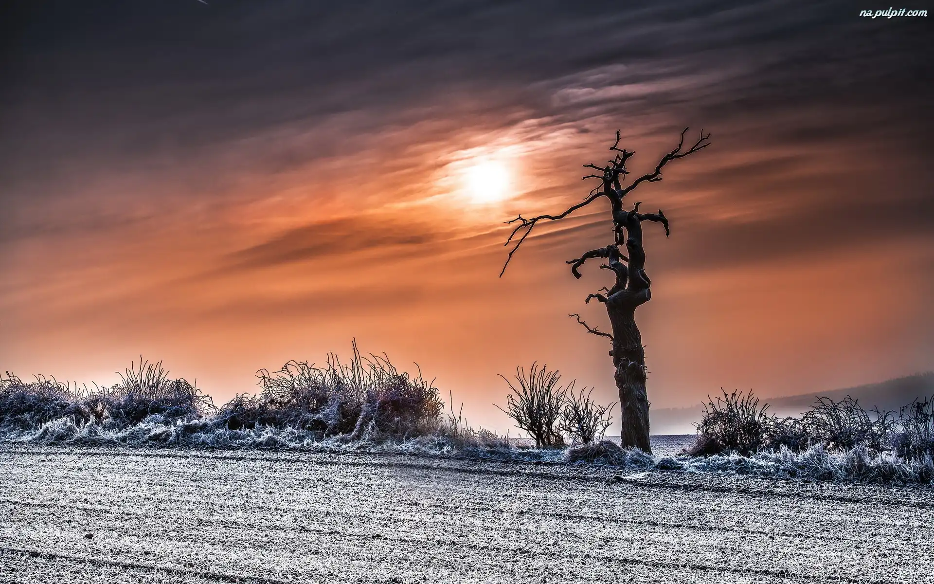 Zima, Drzewo, Słońca, Zachód, Droga Na Pulpit