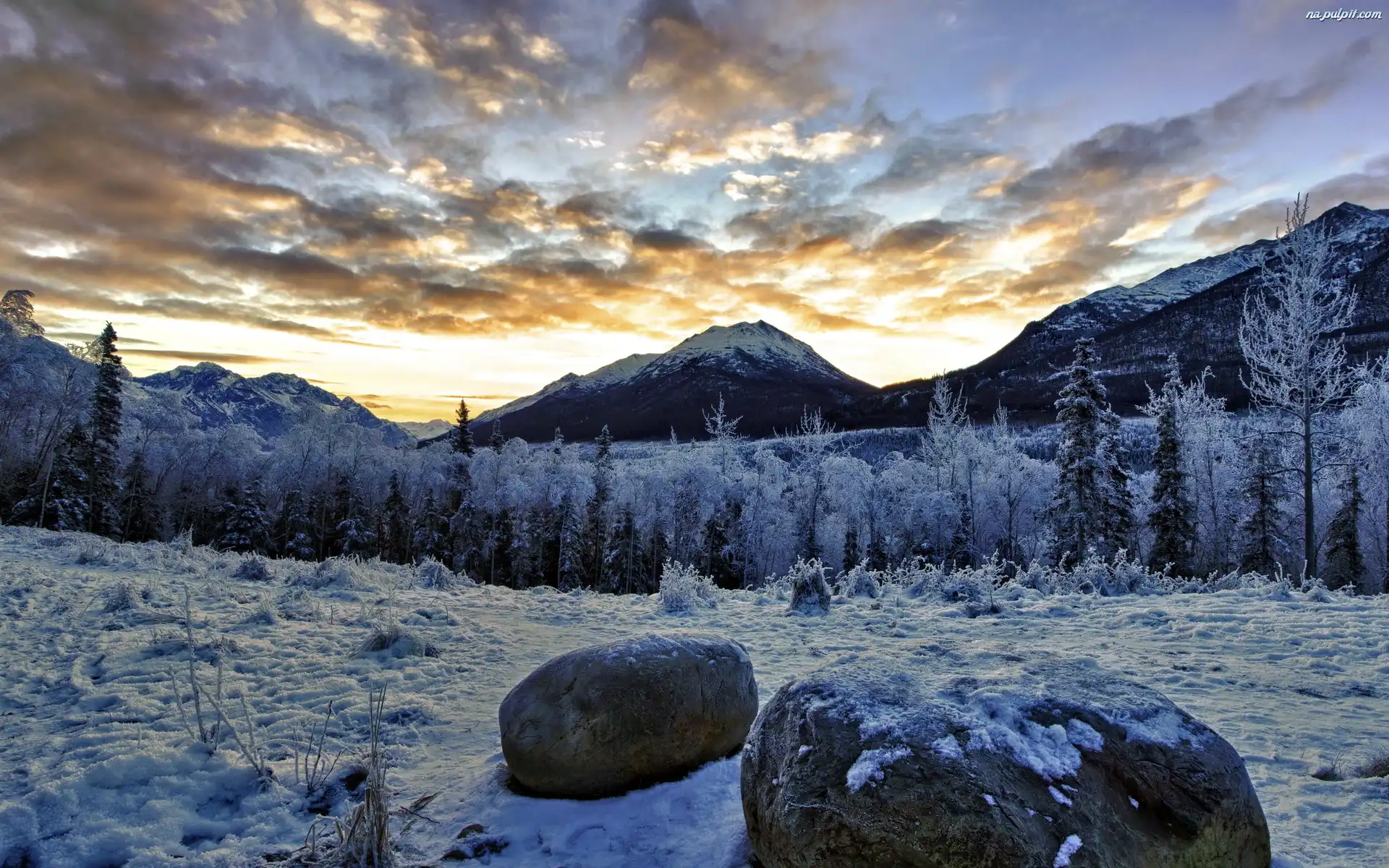 Zima, Góry, Słońca, Zachód, Las Na Pulpit