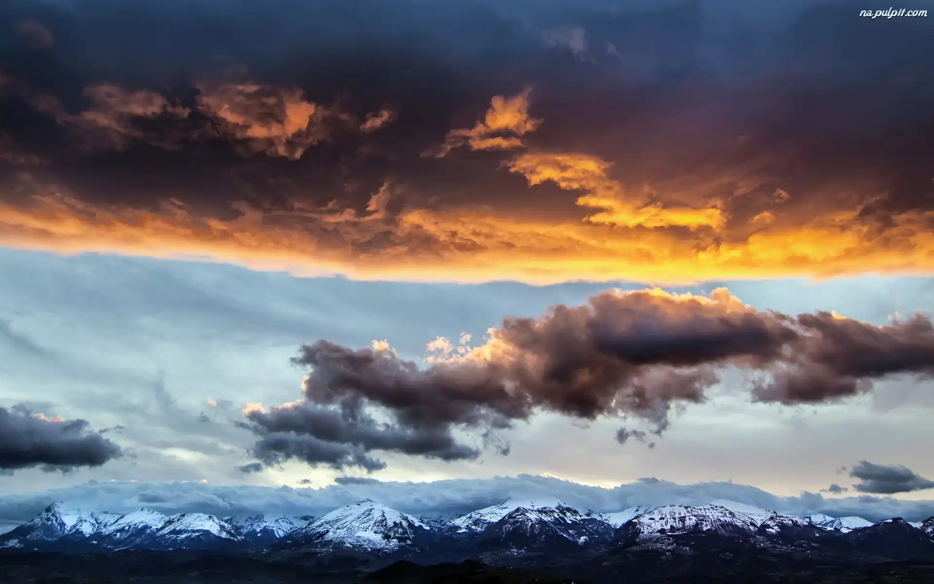 Zima, Skały, Słońca, Zachód, Chmury Na Pulpit