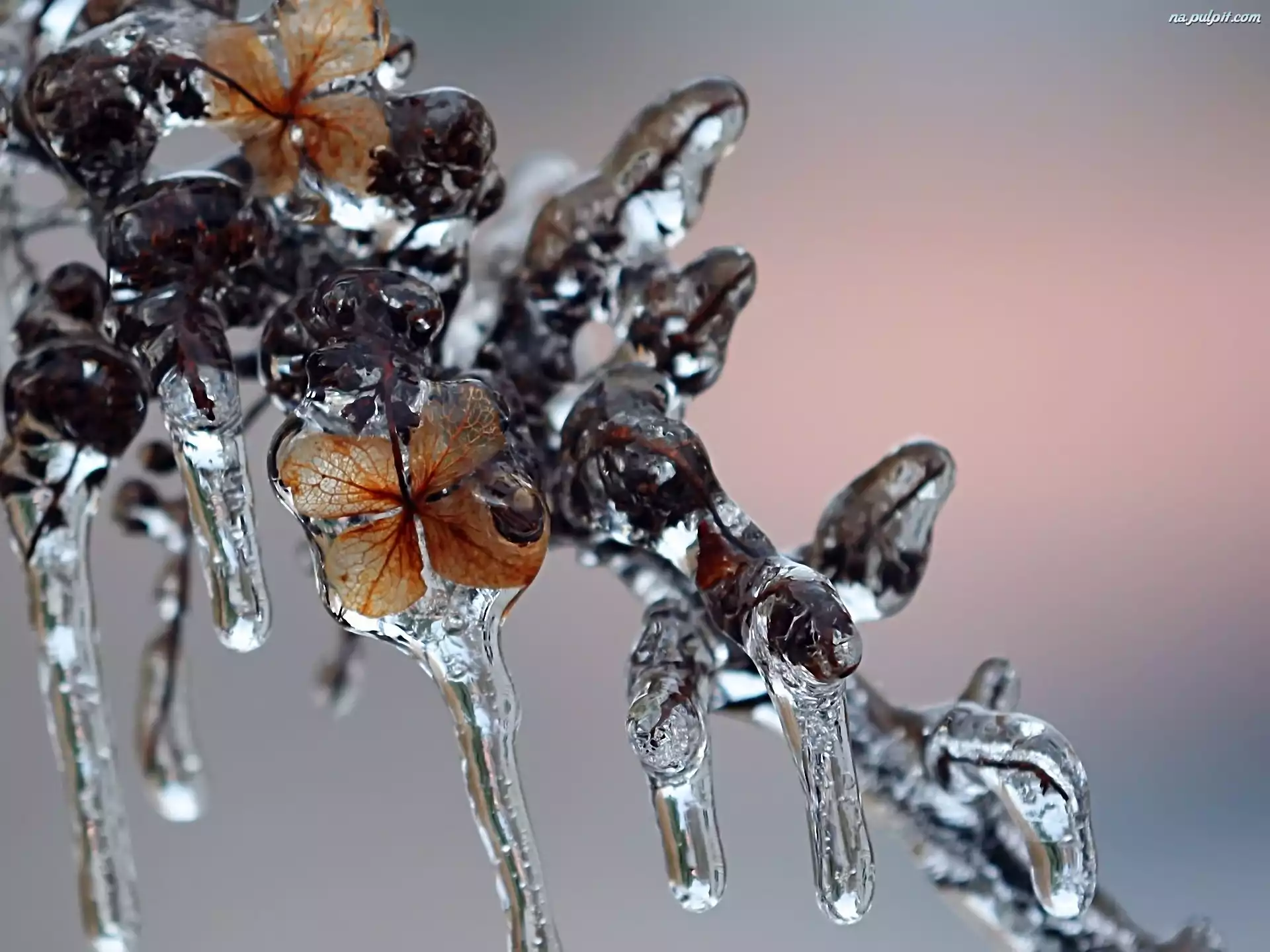 Zima, Liście, Gałąź, Zamarznięta, Sople Na Pulpit