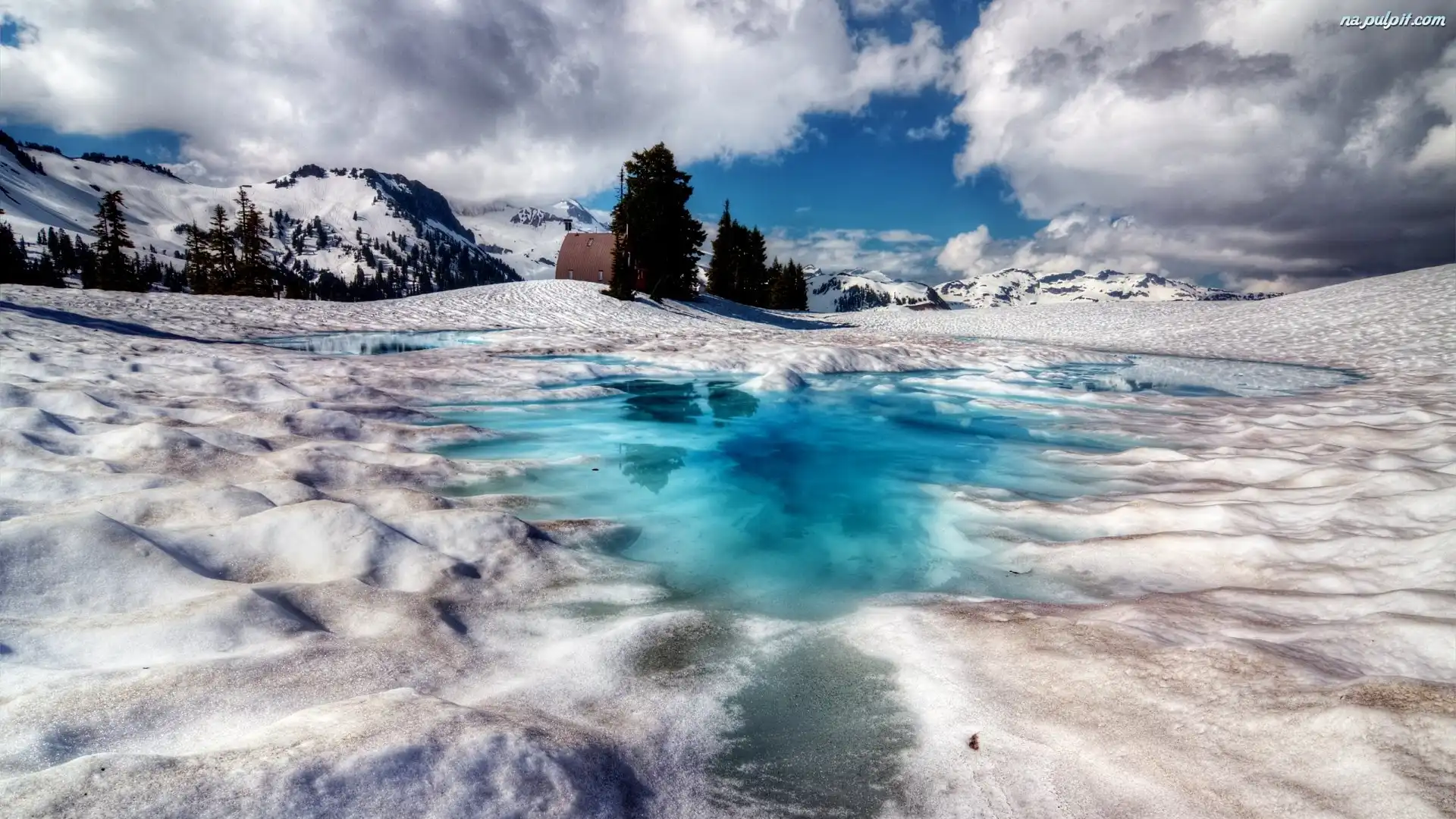 Zima, Jeziora, Zamarznięte, Chmury Na Pulpit